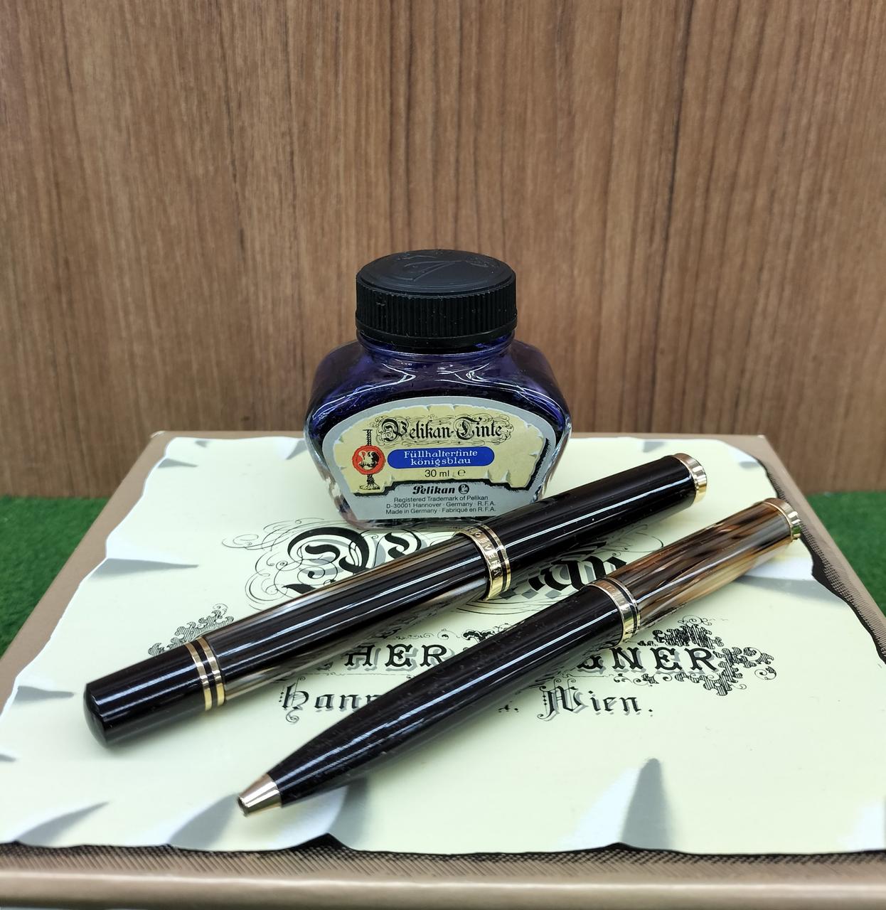 万年筆、ボールペン、インクのセット |
