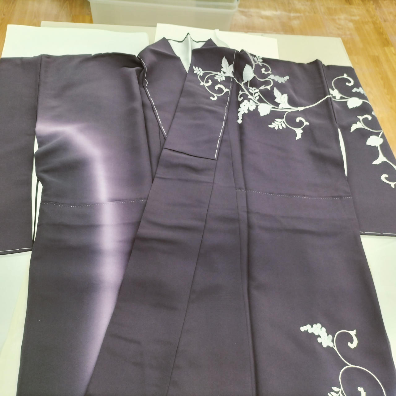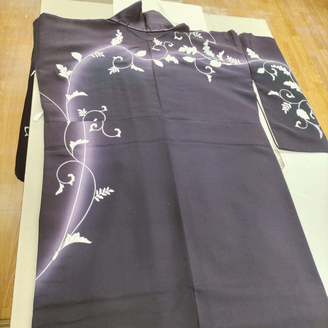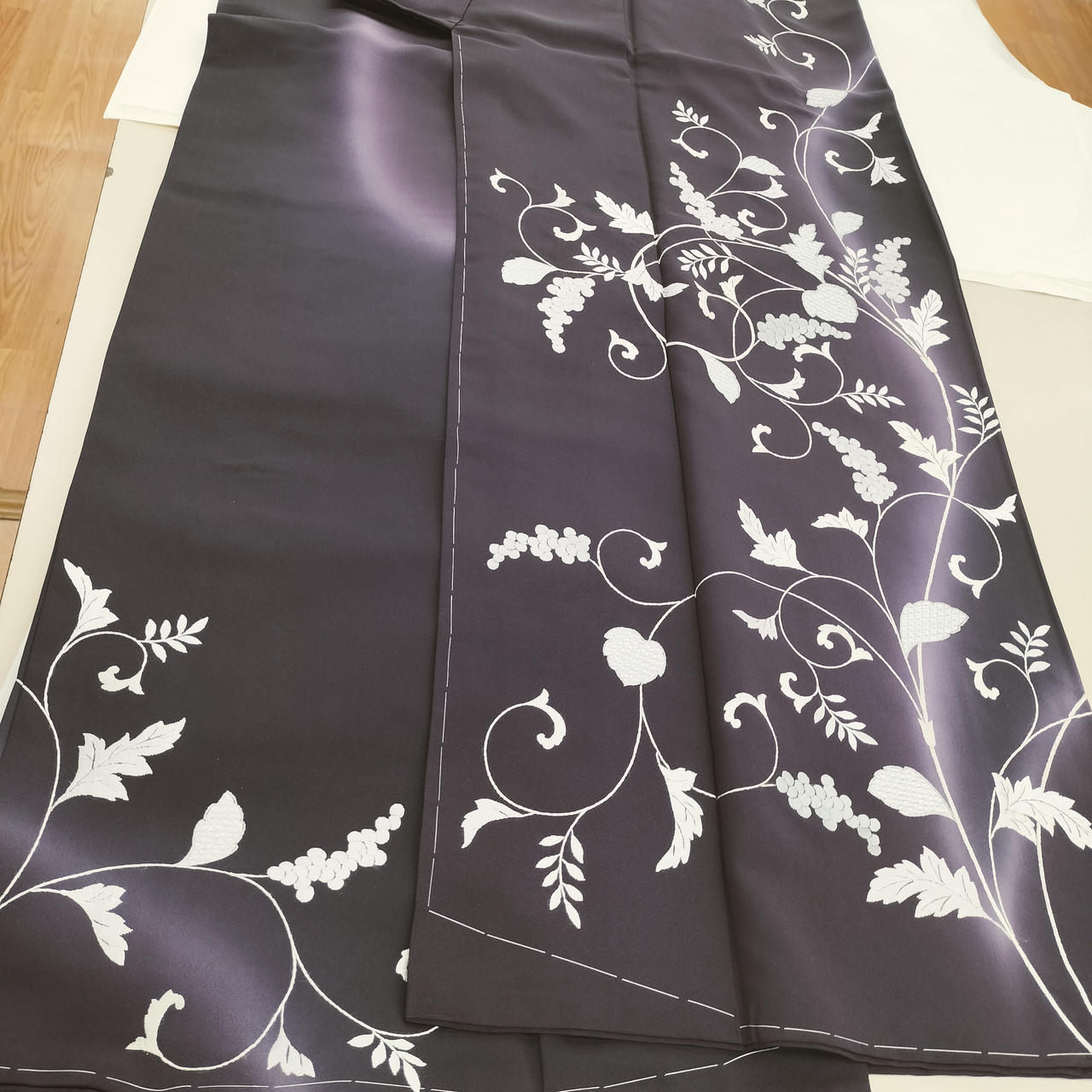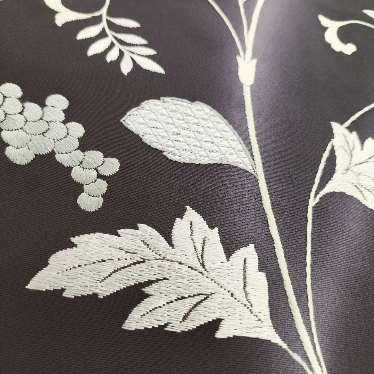 濃い紫地に手刺繍が光る様に見事です