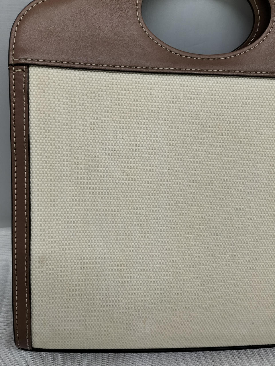 キャンバス部分、中に汚れ、コバ部分剥がれやひび割れあり |