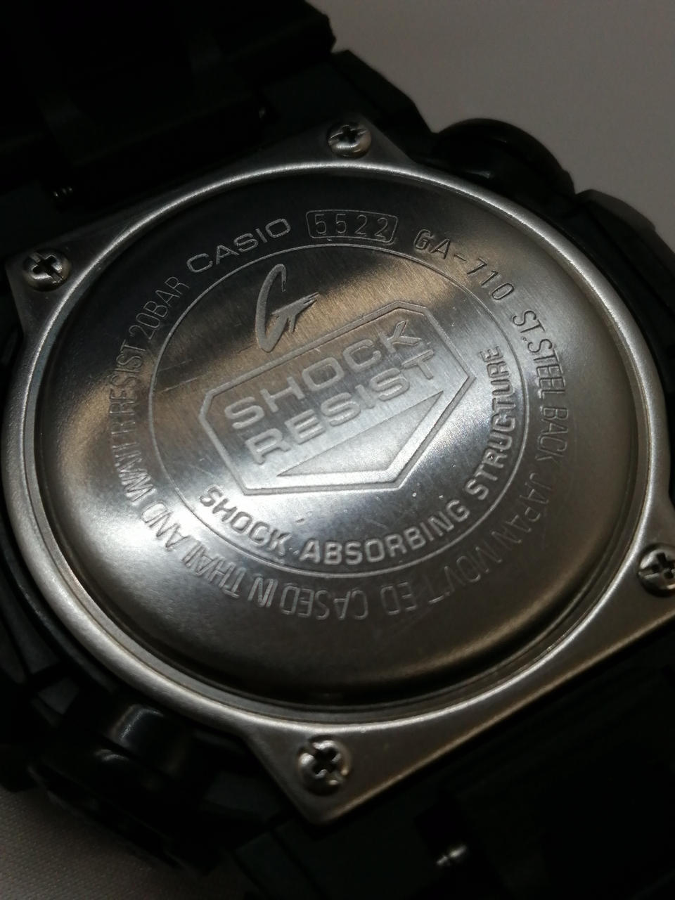 独自の樹脂成形技術による立体的な時分針と力強いインデックスを備えたGA-700