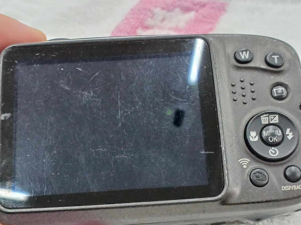 チェック時、通電しましたが撮影ボタン押しても撮影出来ませんでした/右側ヤケ有りバッテリーパック欠品/液晶画面キズ・全体的にキズ汚れ有り
