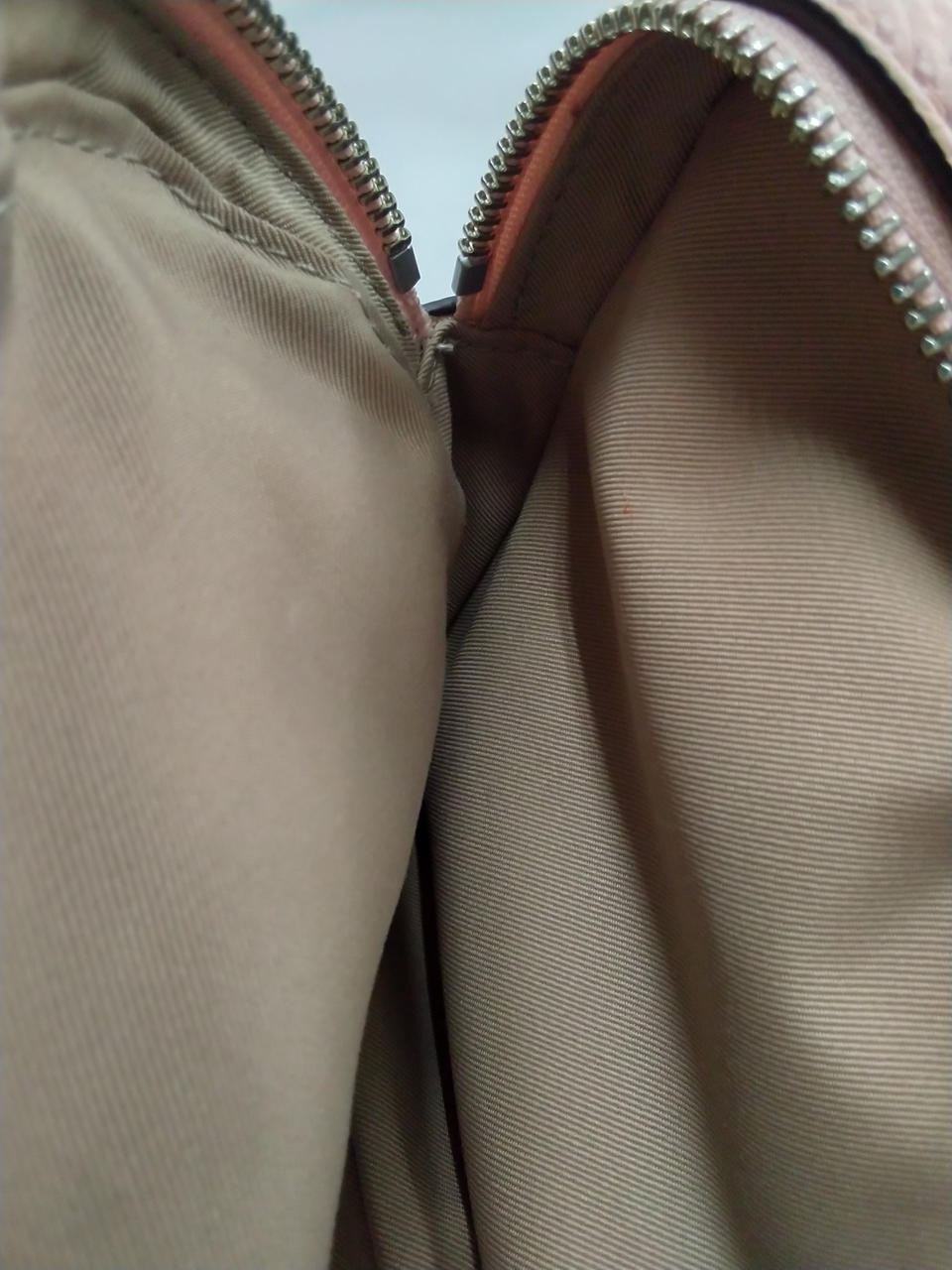 バッグのフチ部分全体が薄っすら黒くなっています。 |