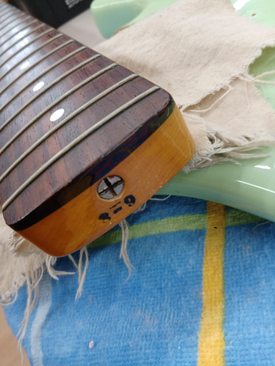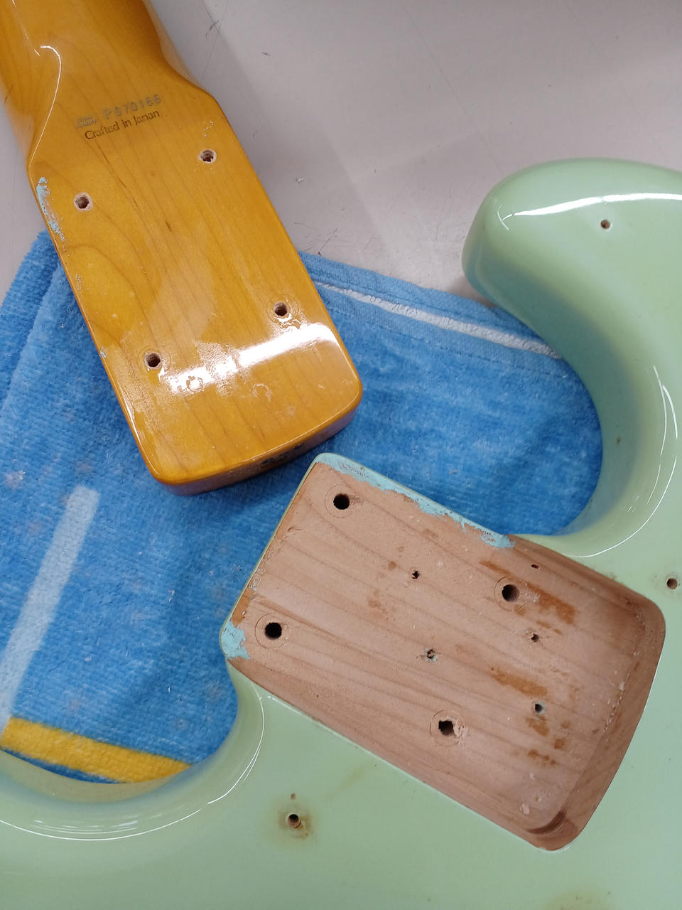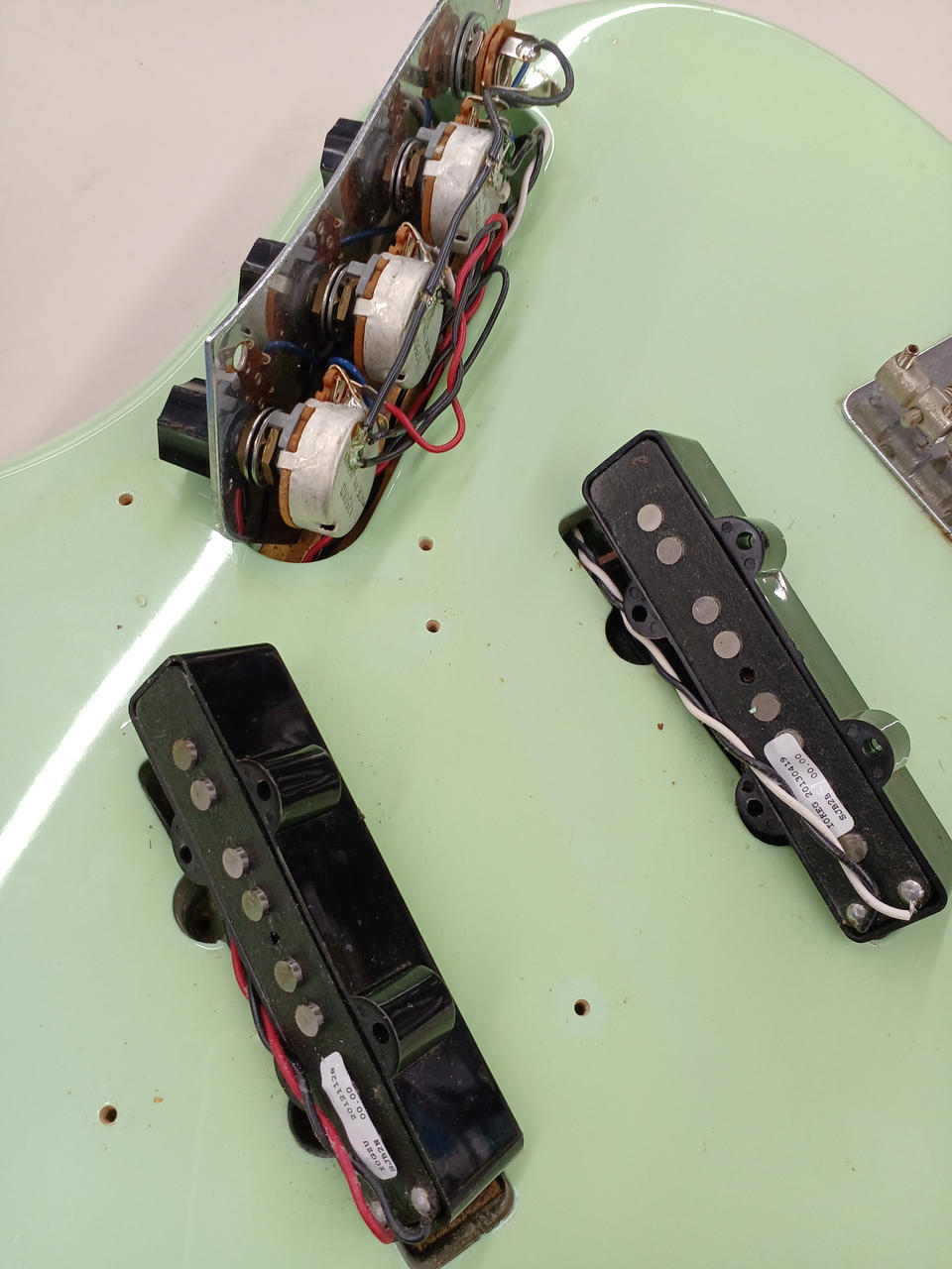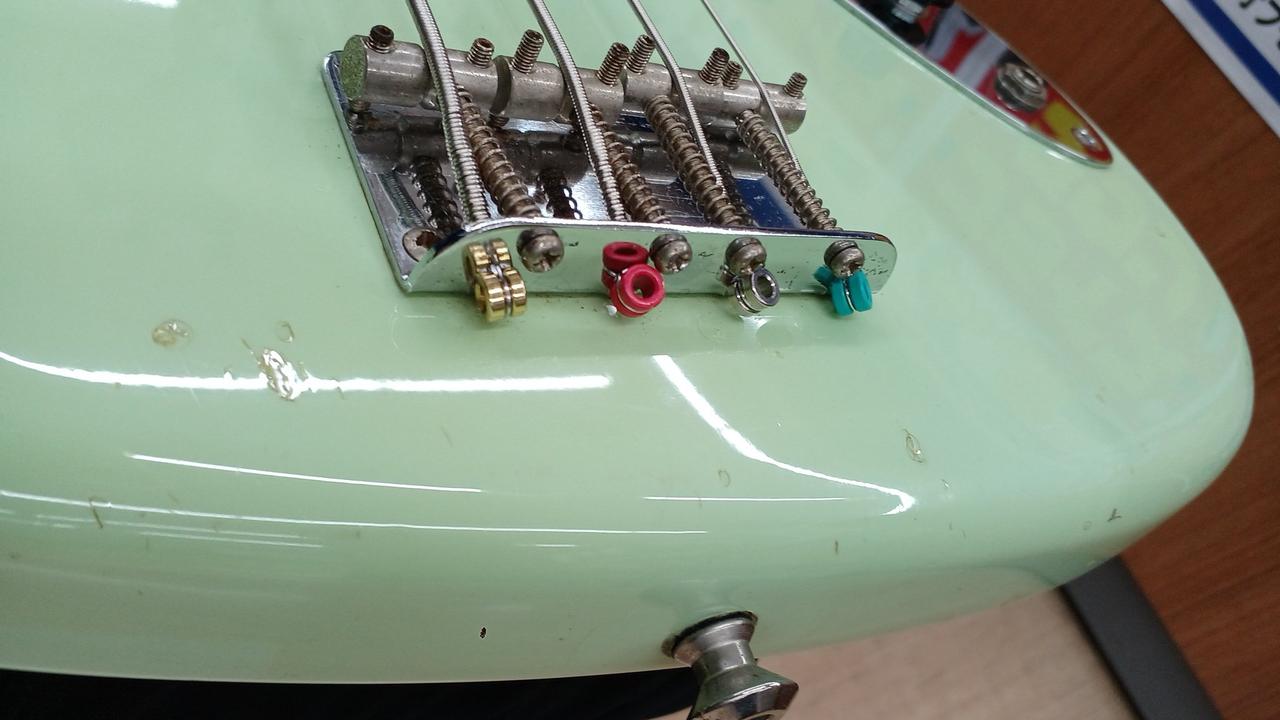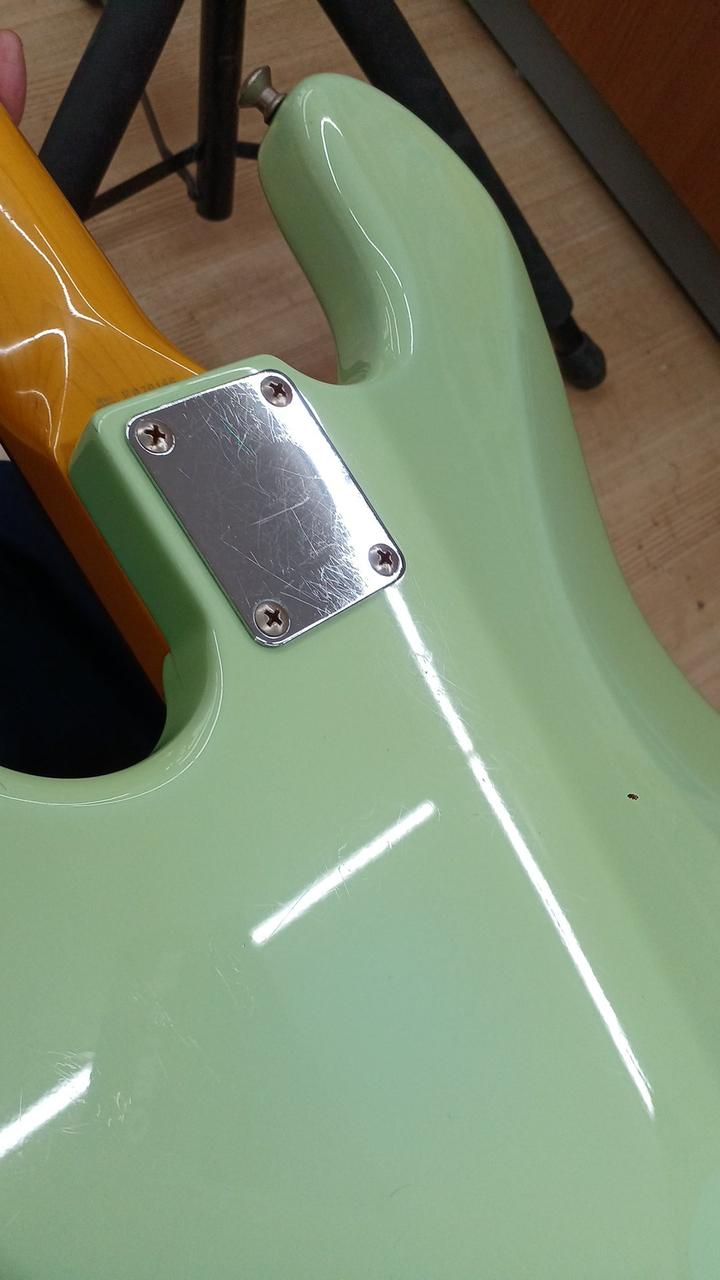 ダイナ期日本製! もともとはソニックブルーですが経年変化でグリーンになっています! ボディ:バスウッド ネック:メイプル 指板:ローズウッド 20F ピックアップ:Seymour Duncan SJB-2 Hot Jazz×2に交換済み 社外ギグバッグ ※背面シール焼けあり 4弦ペグGOTOH製に交換済み |