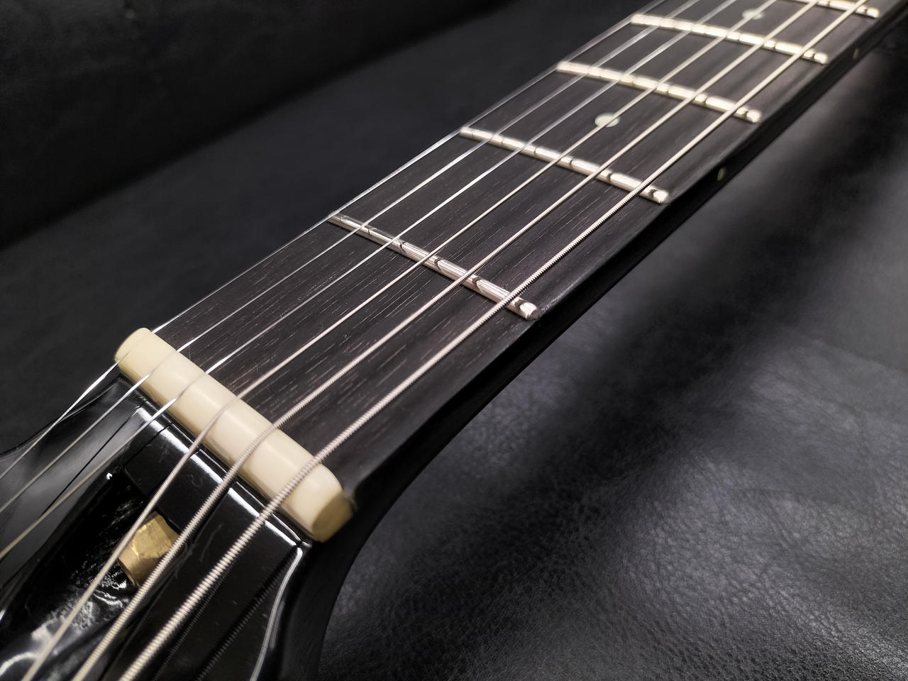 従来の助六とは違いボディ材はマホガニーのみ。ドットインレイにはルミンレイ採用。PUにはSH-1nとSH-4と定番の組み合わせ。 |