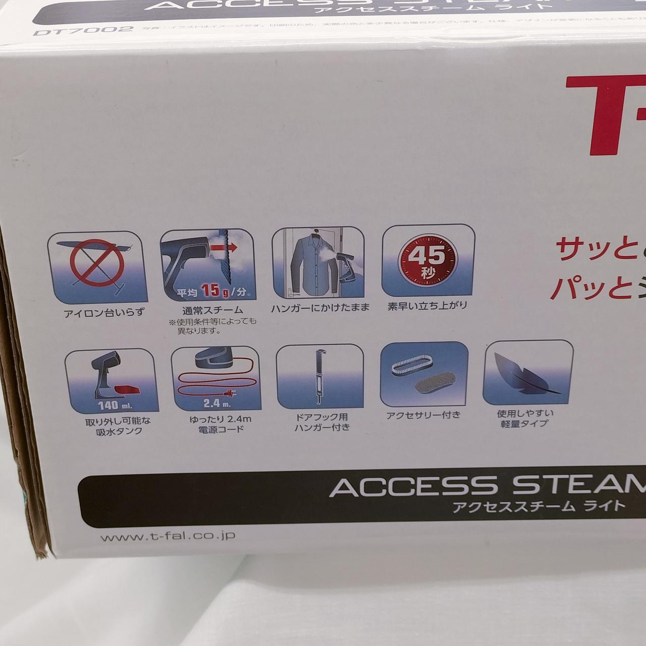 T-falのアクセススチームライトです。サッとあててパットシワのばし!!様々な衣類に対応します!アイロン台いらず!ハンガーに掛けたままO,K!オススメの一品です。