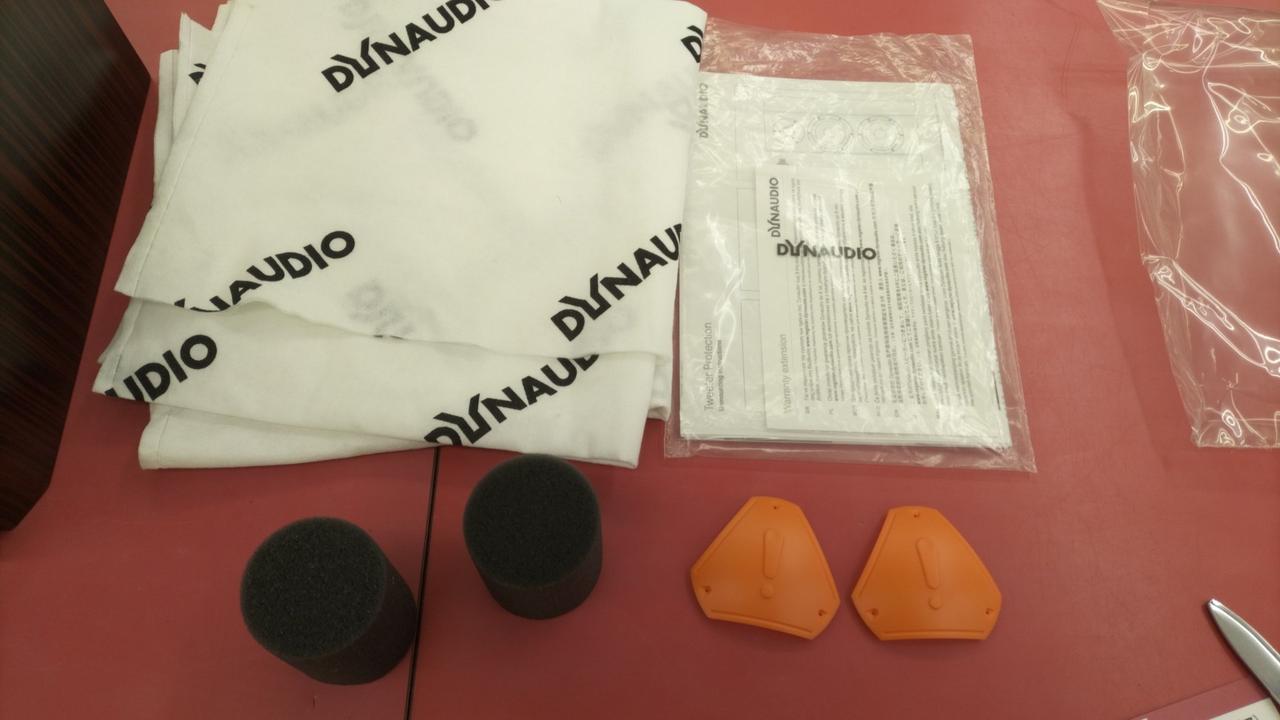 説明書・ツイーター保護カバー・本体用カバー・バスレフポートスポンジ |