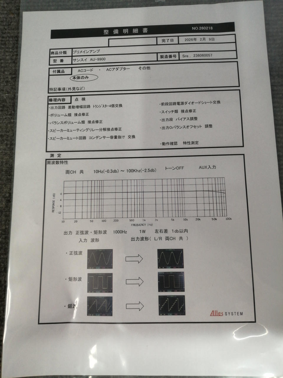 実効出力:80W+80W(4Ω) 2026.2月当店指定業者にてメンテナンス済み |