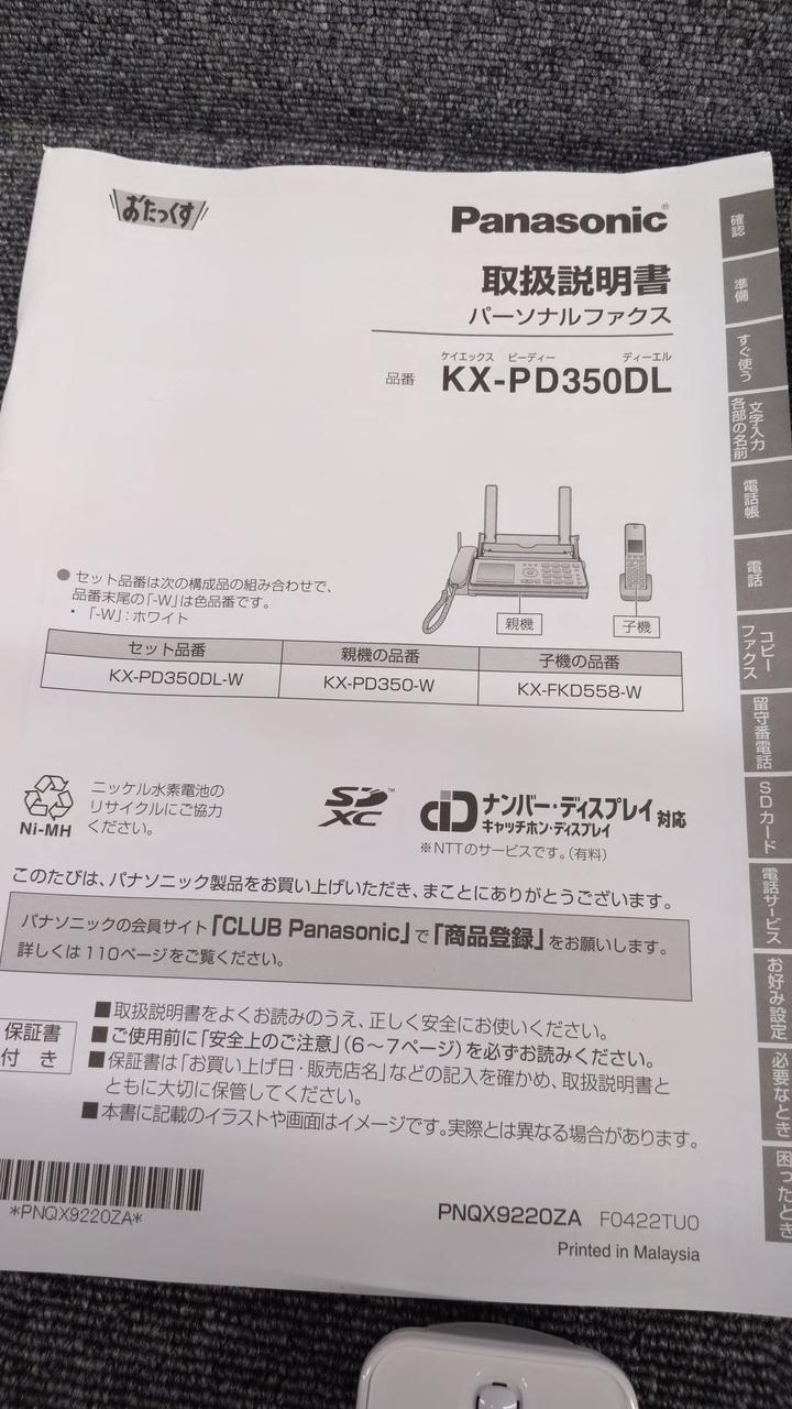 迷惑防止機能を搭載した普通紙ファクスのスタンダードタイプその他機能コピー/スキャナ機能/SDメモリーカード対応/DECT準拠方式 |