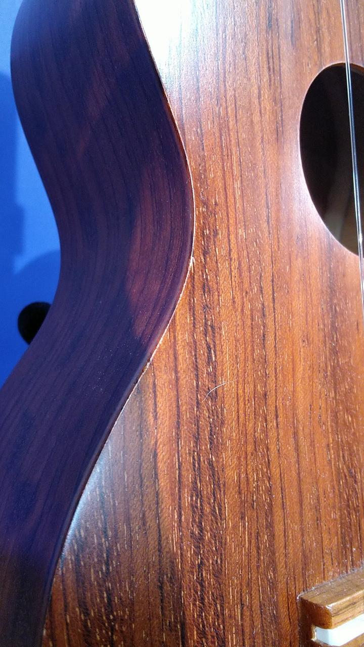 国産ウクレレシェアNo.1のブランドです。ボディはブビンガ材の合板です。 |