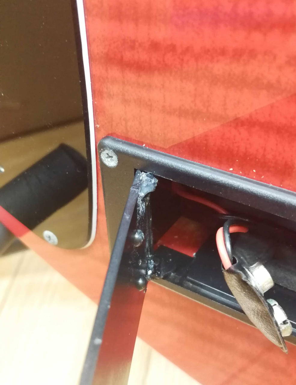サスティナーとバイパススイッチ(9V電池必要)を搭載しており原音、原音+ハーモニクス、ハーモニクスの3モードの切り替えが可能 |