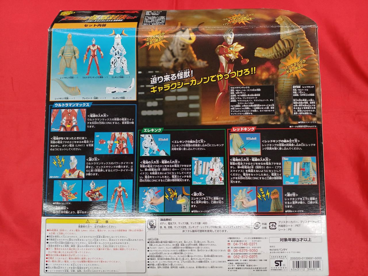 外箱ヘッダーイタミ。本体怪獣×2動作○、マックス動作✕。エレキング色移りあり。