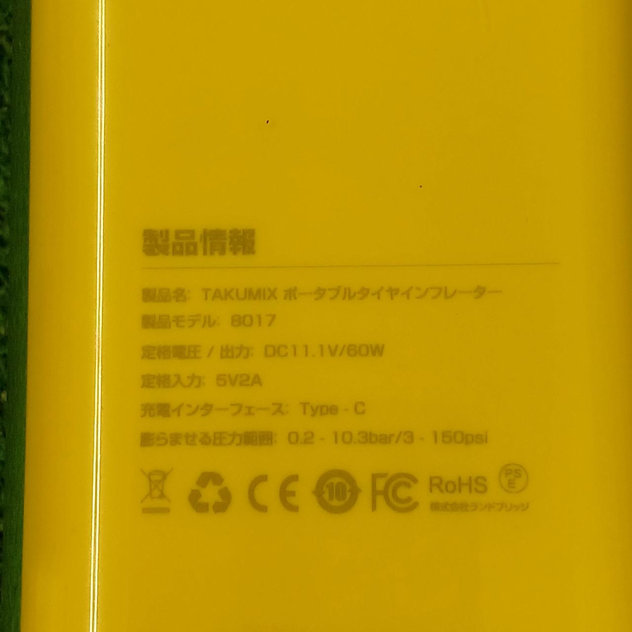 充電インターフェース:Type-C。膨らませる圧力範囲:0.2-10.3bar/3-150psl。 |
