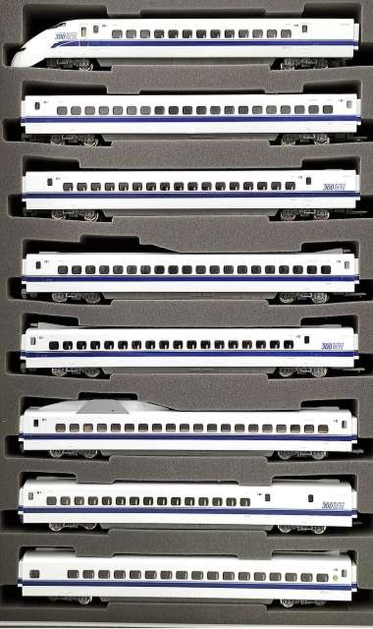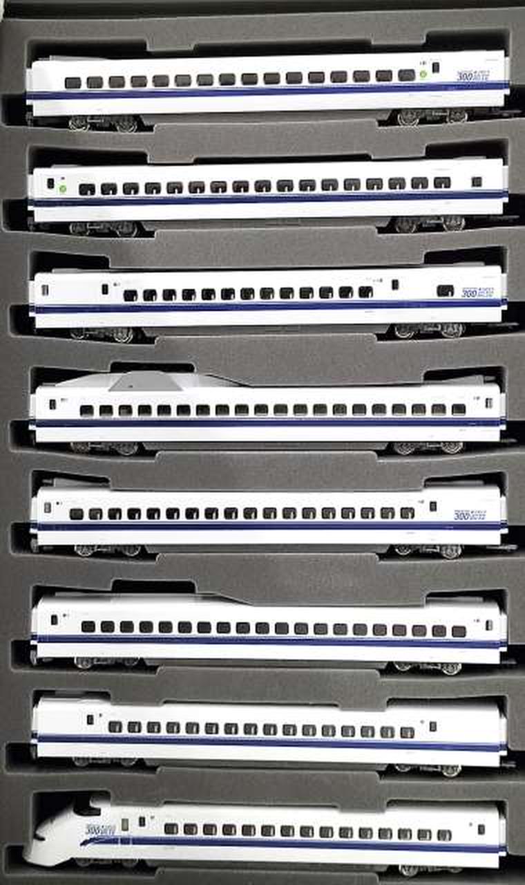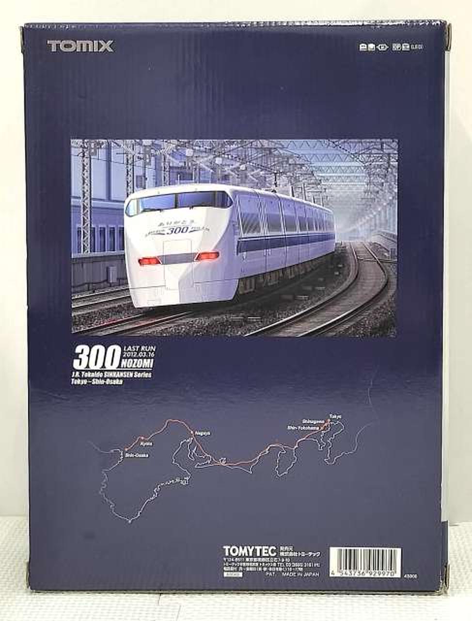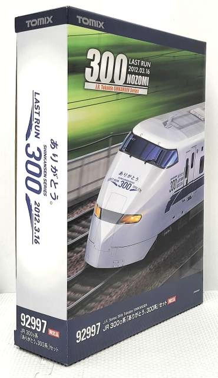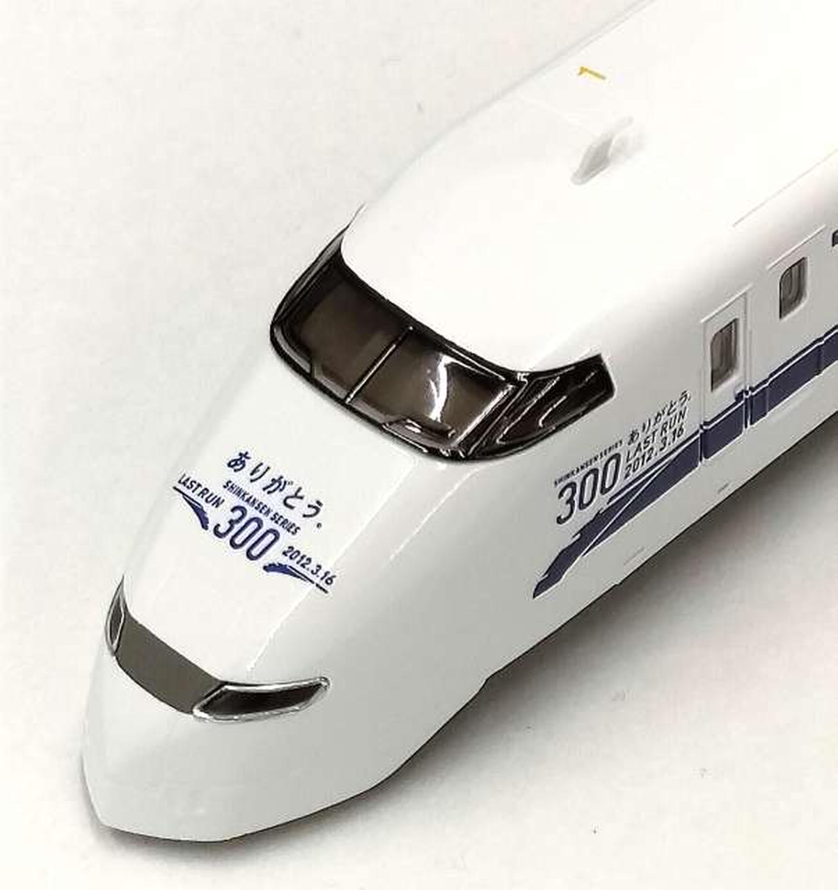 2012年3月の300系のぞみ引退を記念し、引退前一ヶ月間装飾された姿を製品化 / 「ありがとう。300・LASTRUN」表記を印刷 / 乗降ドアがプラグドアから引戸になった後期型の姿を再現 / 車番、グリーン車マーク、屋根上含む号車表示、JRマークなど印刷で再現 / フライホイール付動力採用 / フックリング通電式カプラー採用 / 銀色車輪採用 / シート:茶色系 / グレードアップ用転写シート付属 |
