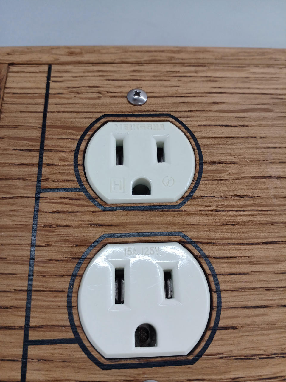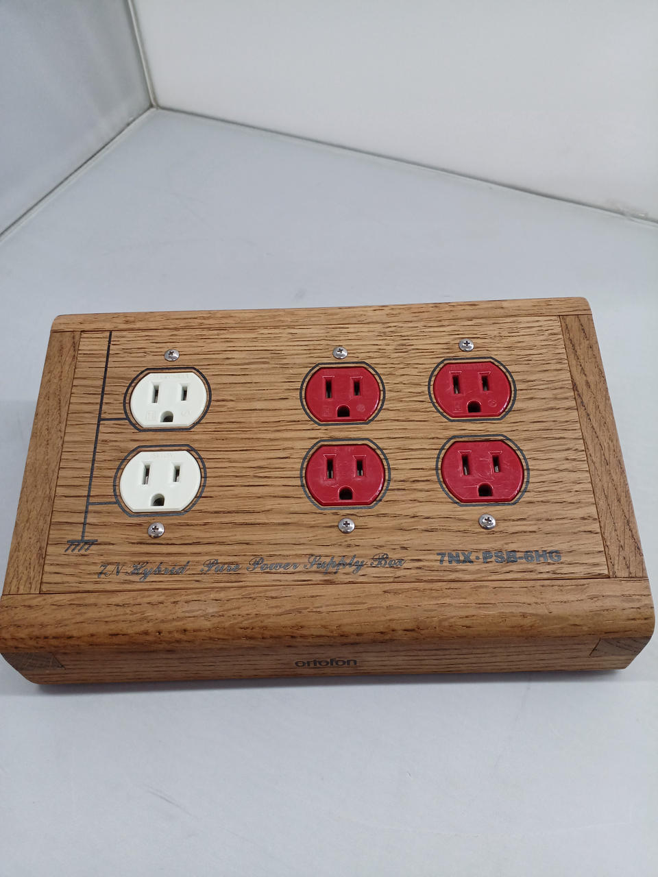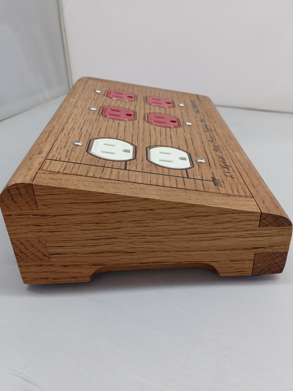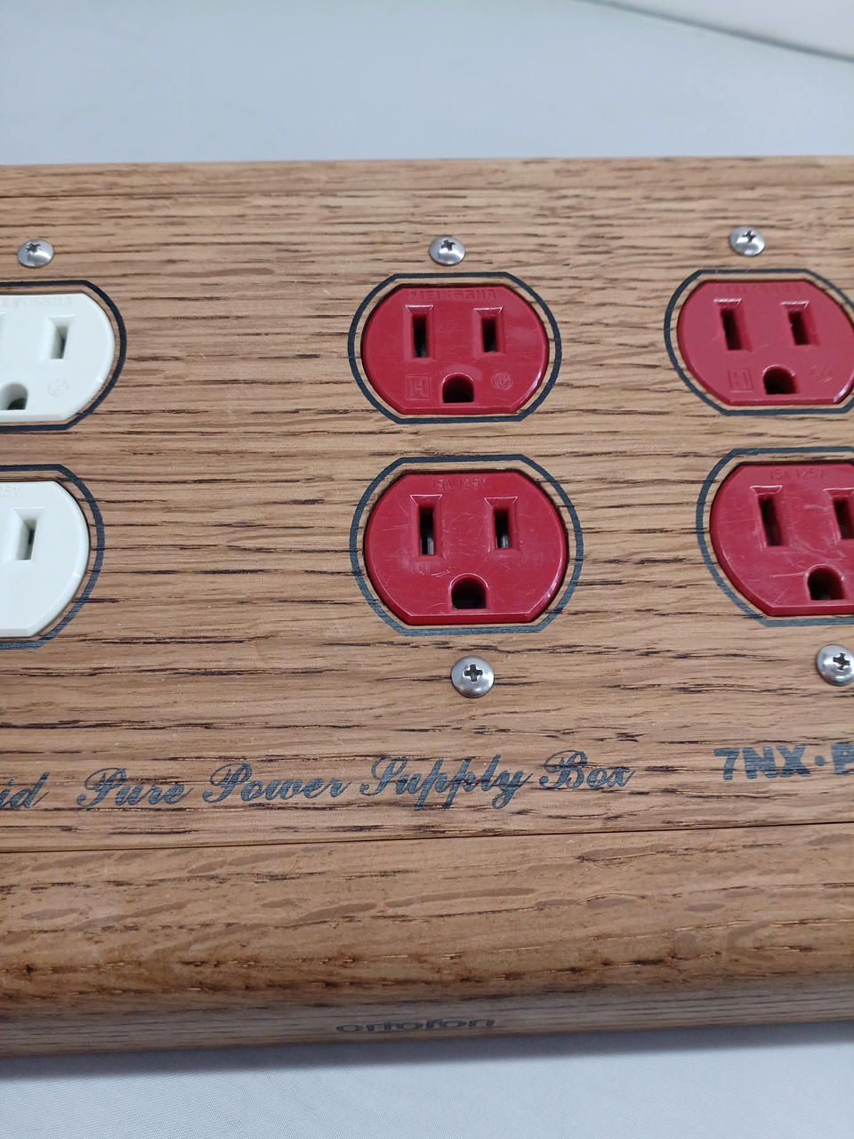 通電確認済み。珍しい木製の電源タップです。 |