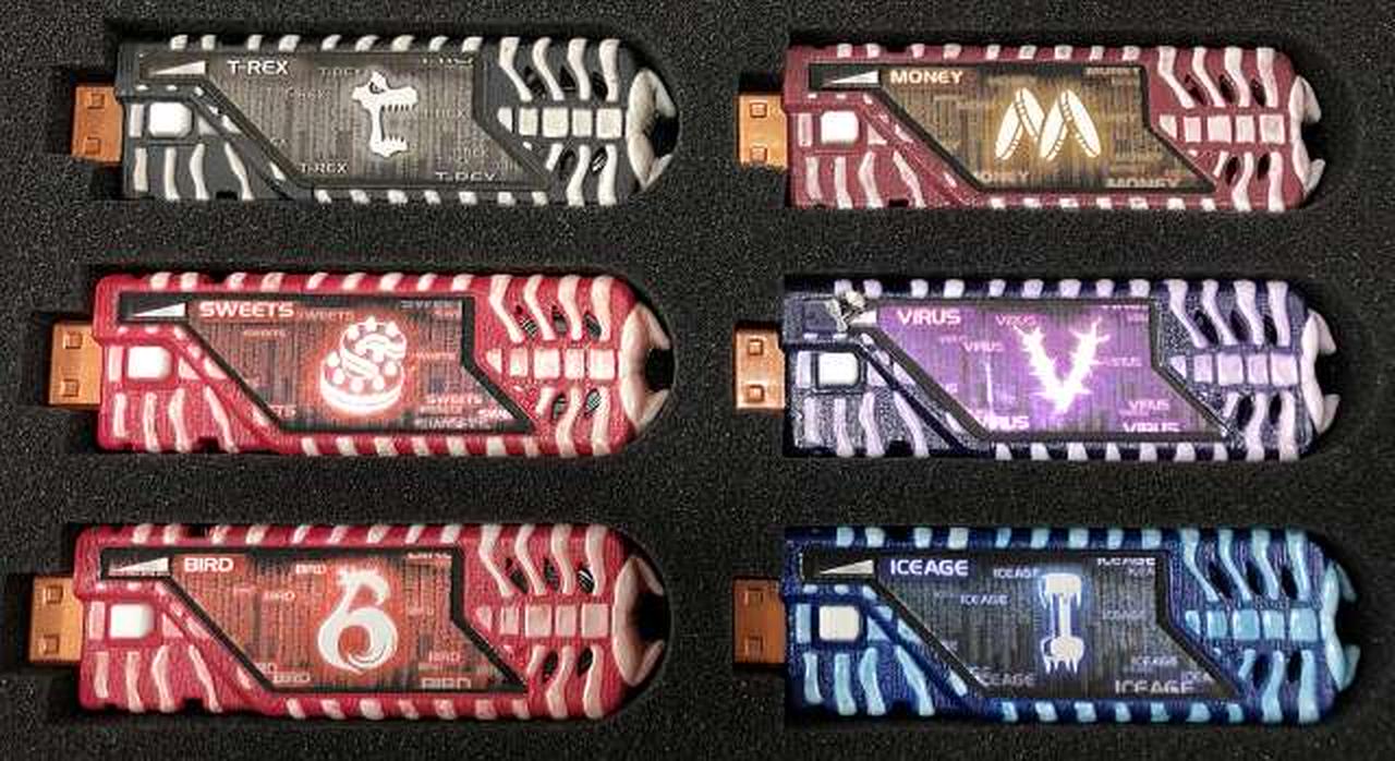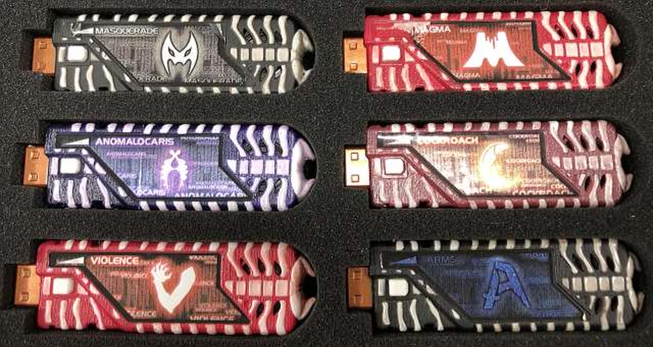一部ボタンが押せないものがあります。(先端の突起を押すことにより音声は鳴ります。) マスカレード、アノマロカリス、ナイトメア、マグマ、エナジー、ヴァイラス、アイスエイジ、インビジブル |