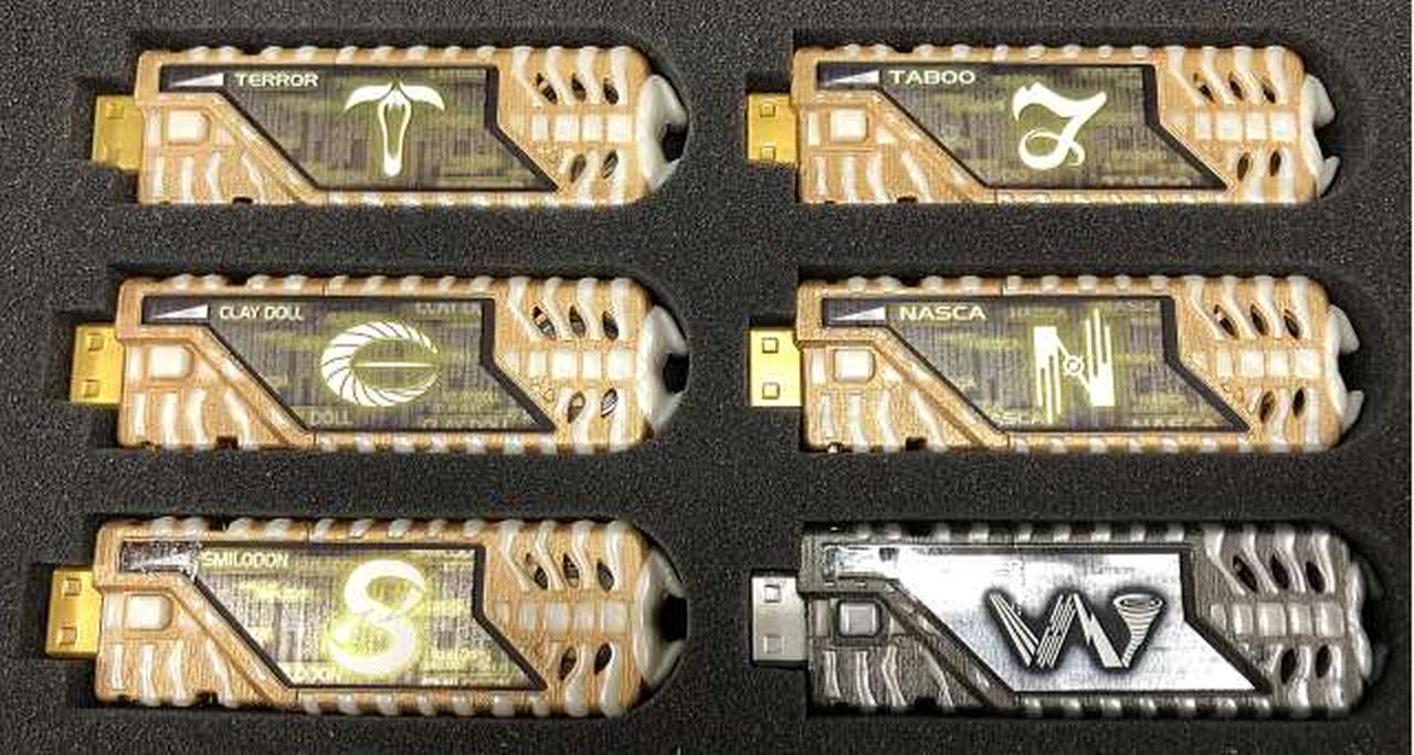 ミュージアムによって風都に流通したガイアメモリ(ドーパントメモリ)が35本セットで手に入るスペシャルアイテムです。 |