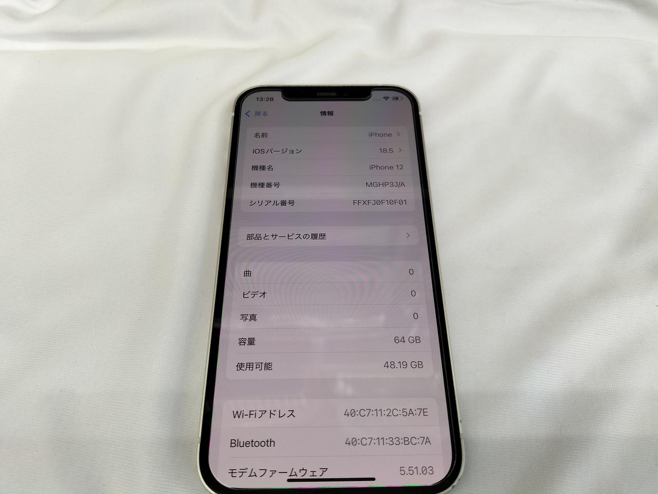 IOS:18.5 容量:64GB SIMロック:あり キャリア:AU