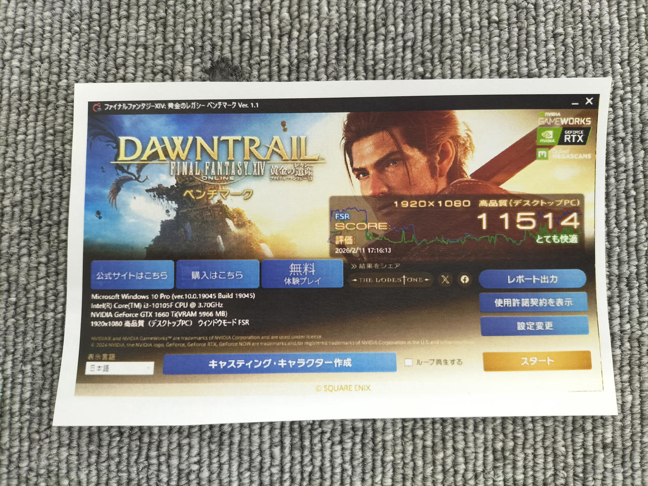ベンチマークスコア:11514 |