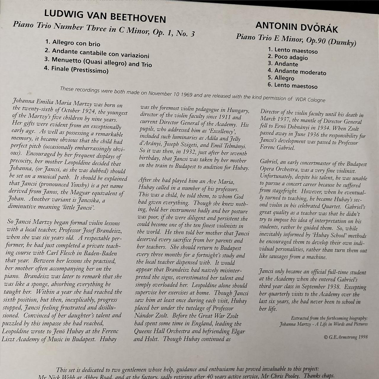 Johanna Martzy BEETHOVEN Piano Trio Op.1 No.3 |