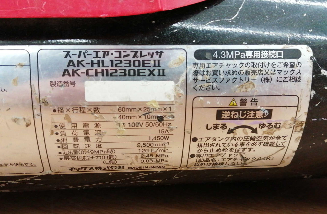 (ON圧)約1.1MPa (OFF圧)約1.5MPa |
