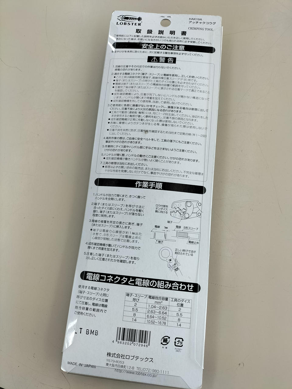 ロブテックス エビ H 圧着工具 HAK19A |