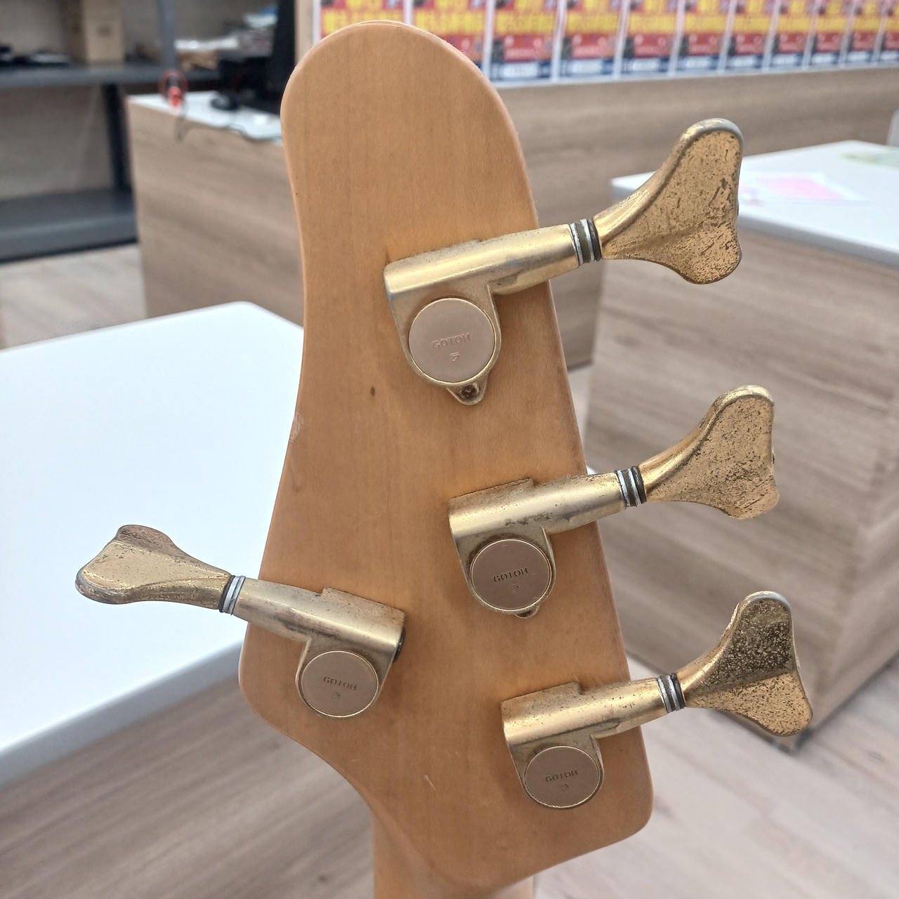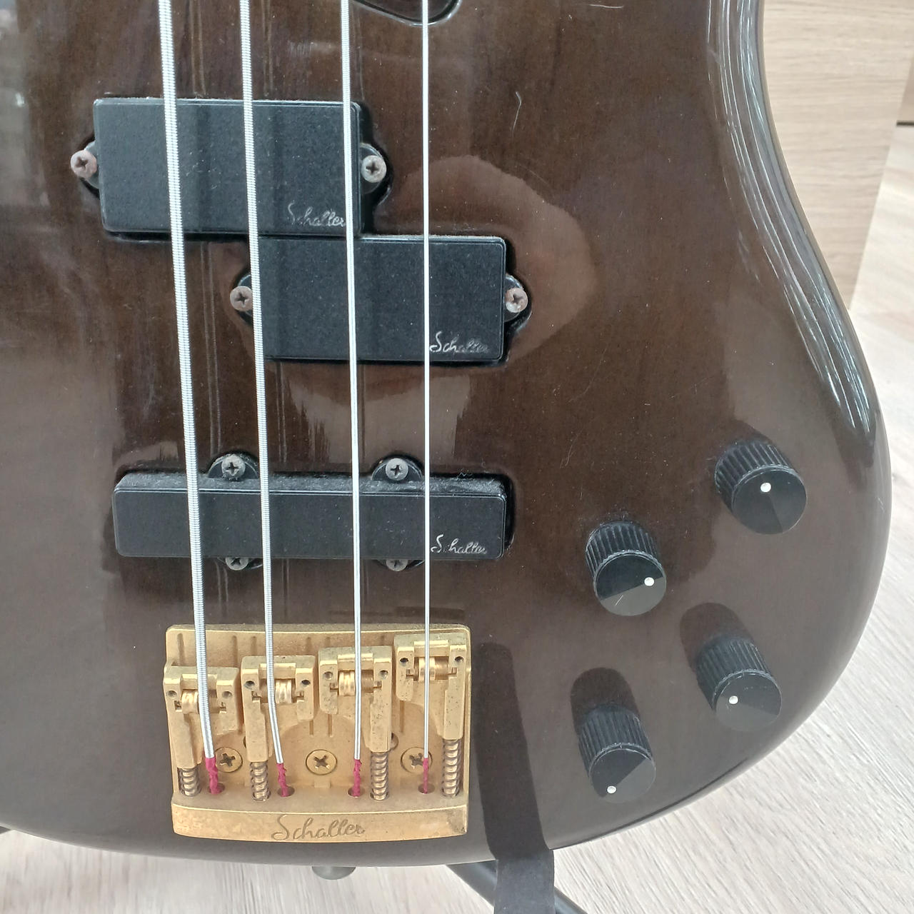 前後共に「Schaller」製ピックアップを搭載。ペグも「GOTOH」製となっています。 |