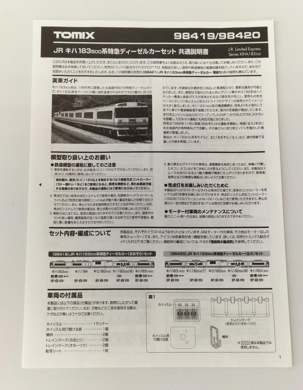 98421の取説・パーツ入ってます。トレインマーク使用済と思われます。 |