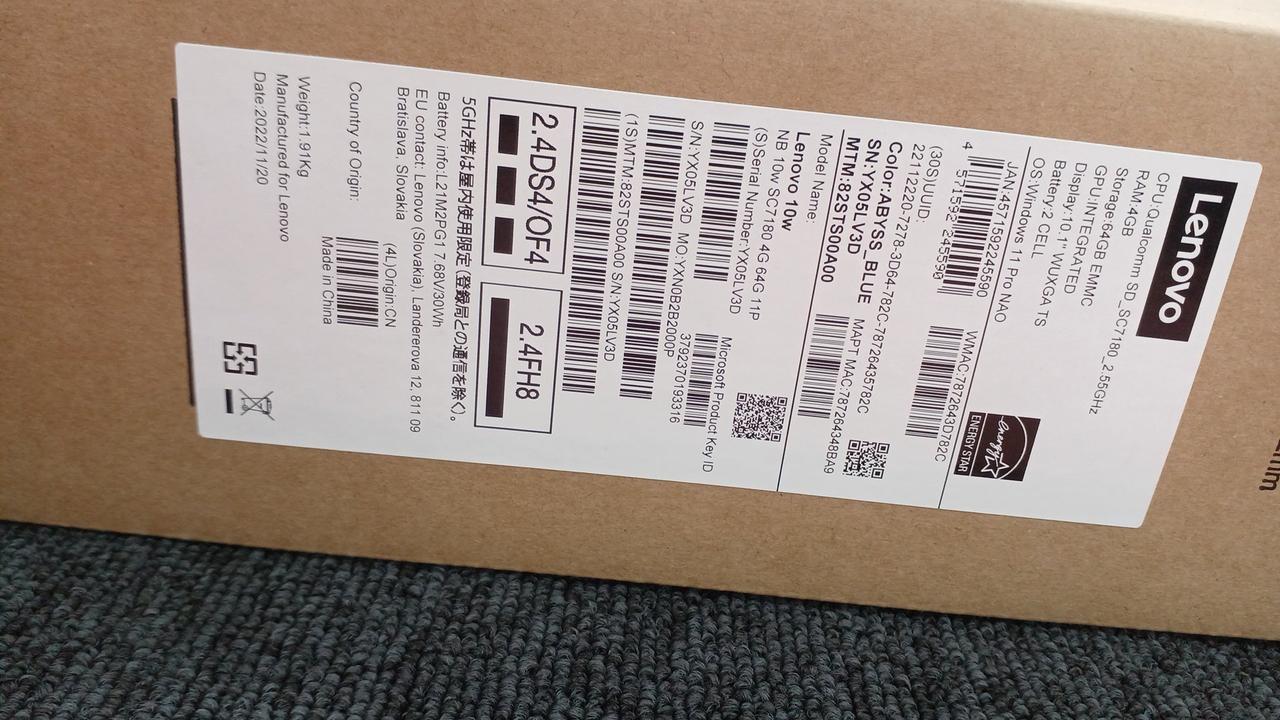 CPU:Qualcomm Snapdragon 7c Gen2 /2.55GHz メモリ:4GB eMMC:64GB |