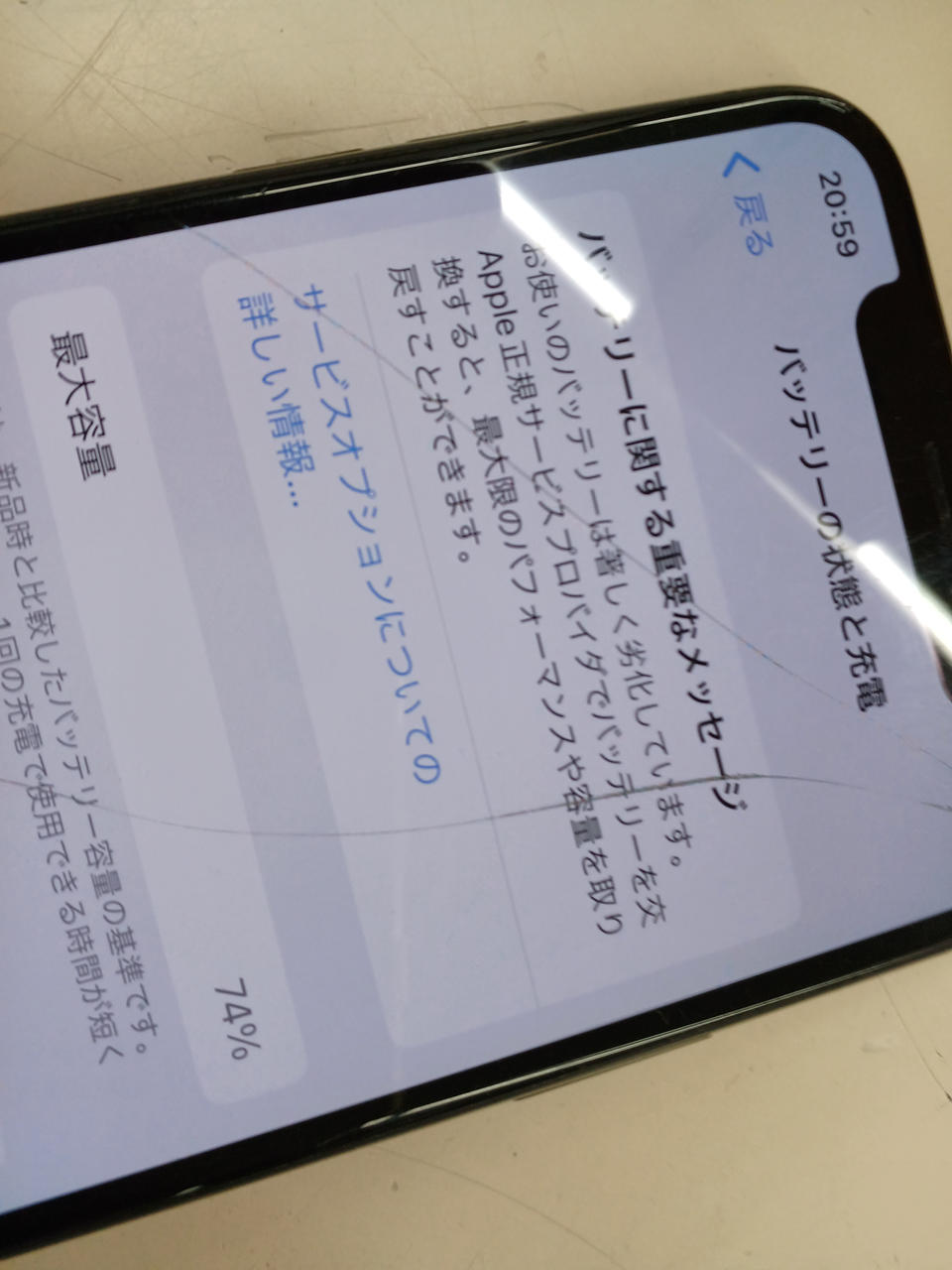 キャリア:SOFTBANK iOS:16.7.14 バッテリー最大:74% 容量:256GB |