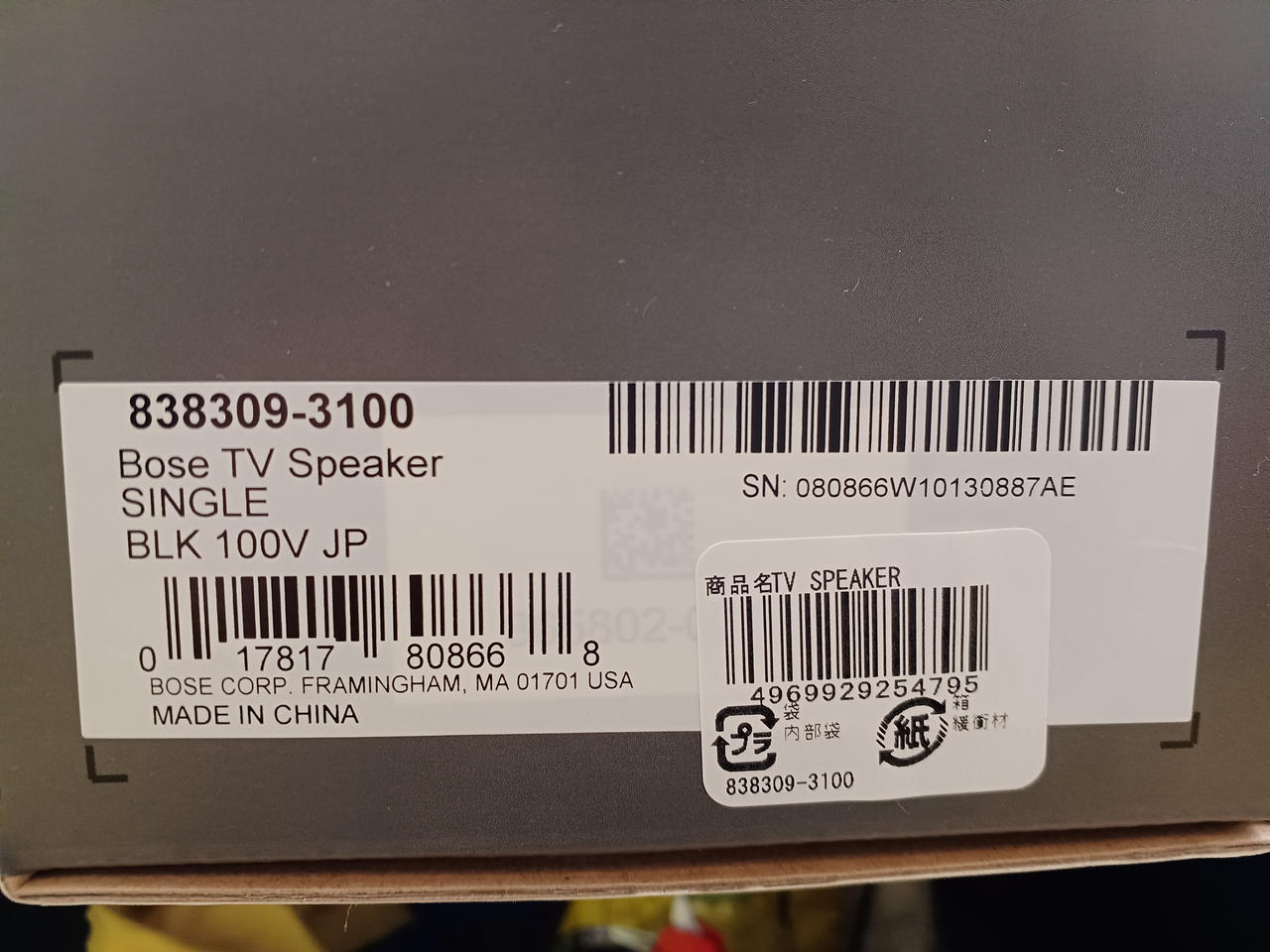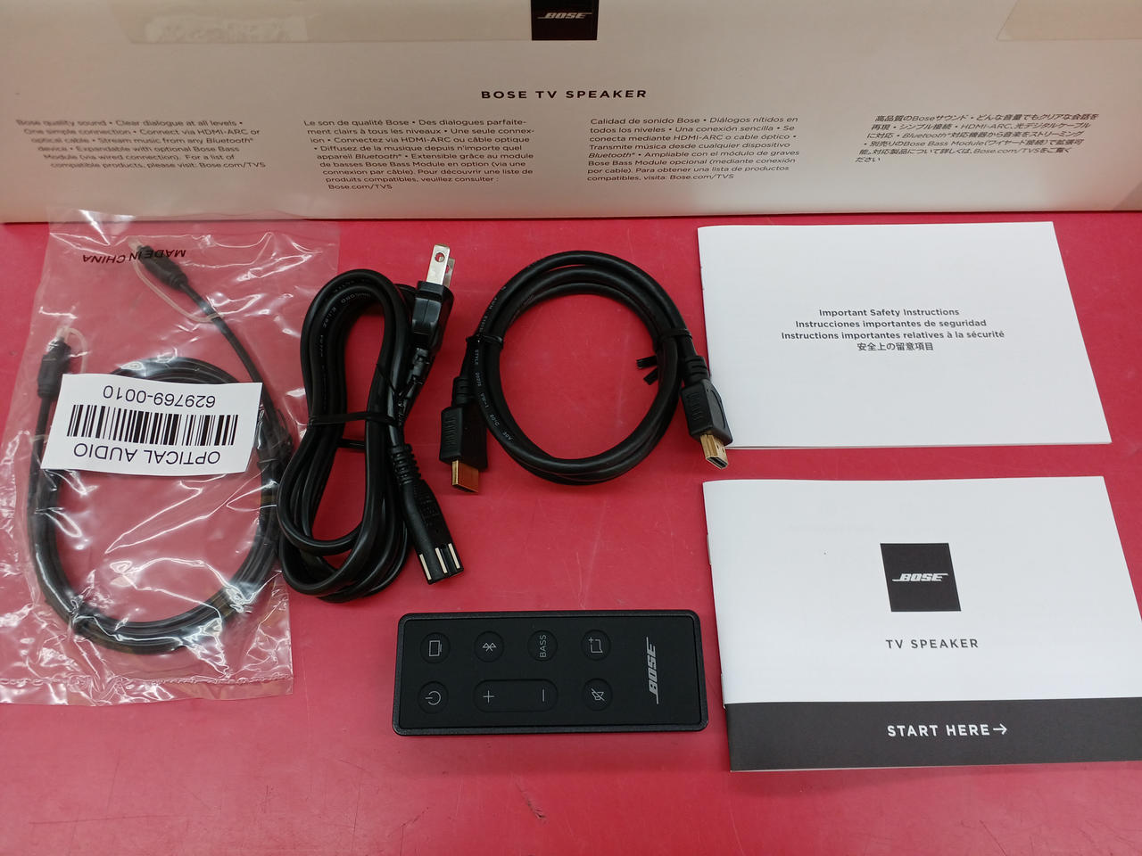 箱、説明書、リモコン、電源コード、HDMIケーブル、光音声ケーブル |
