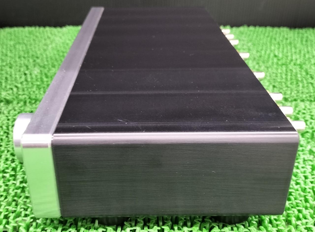 シンプルな構成のプリアンプ。アンプ回路はコンパクトな基盤に精度の高いパーツを搭載することでハイスピード化を測っています。 |