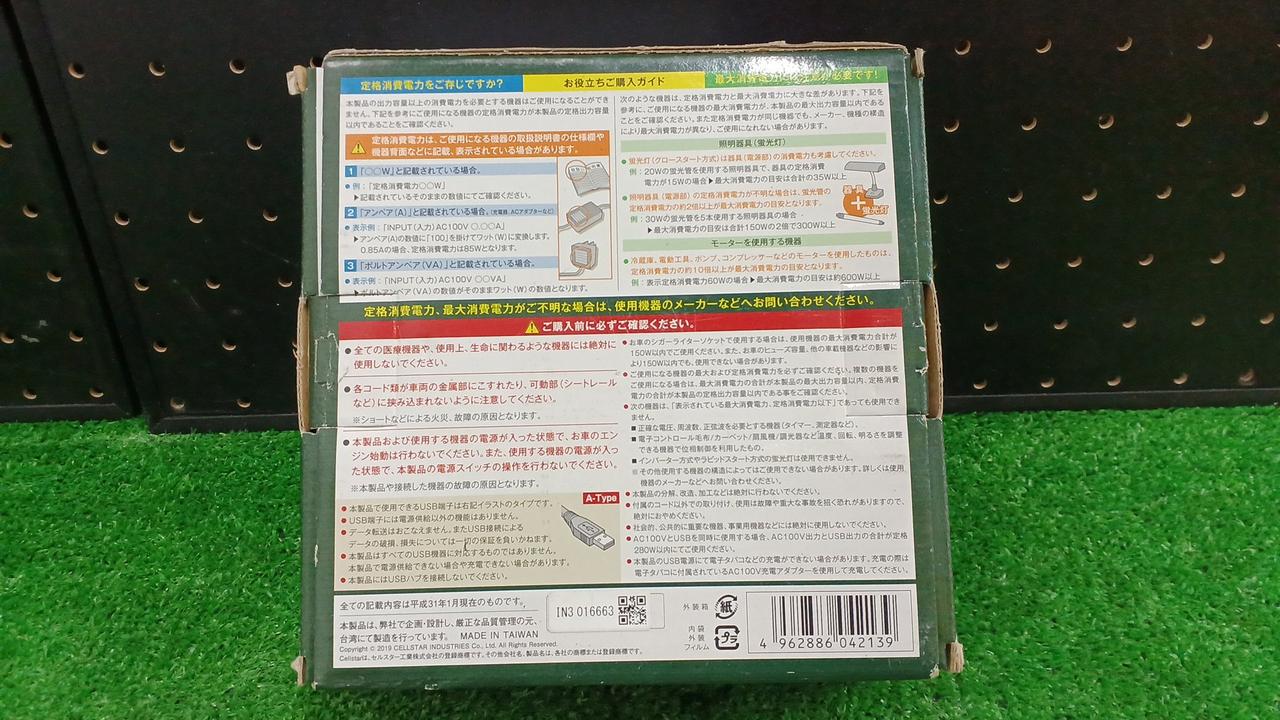 ACコンセントも使えるので家電もOKのコンパクトインバーター