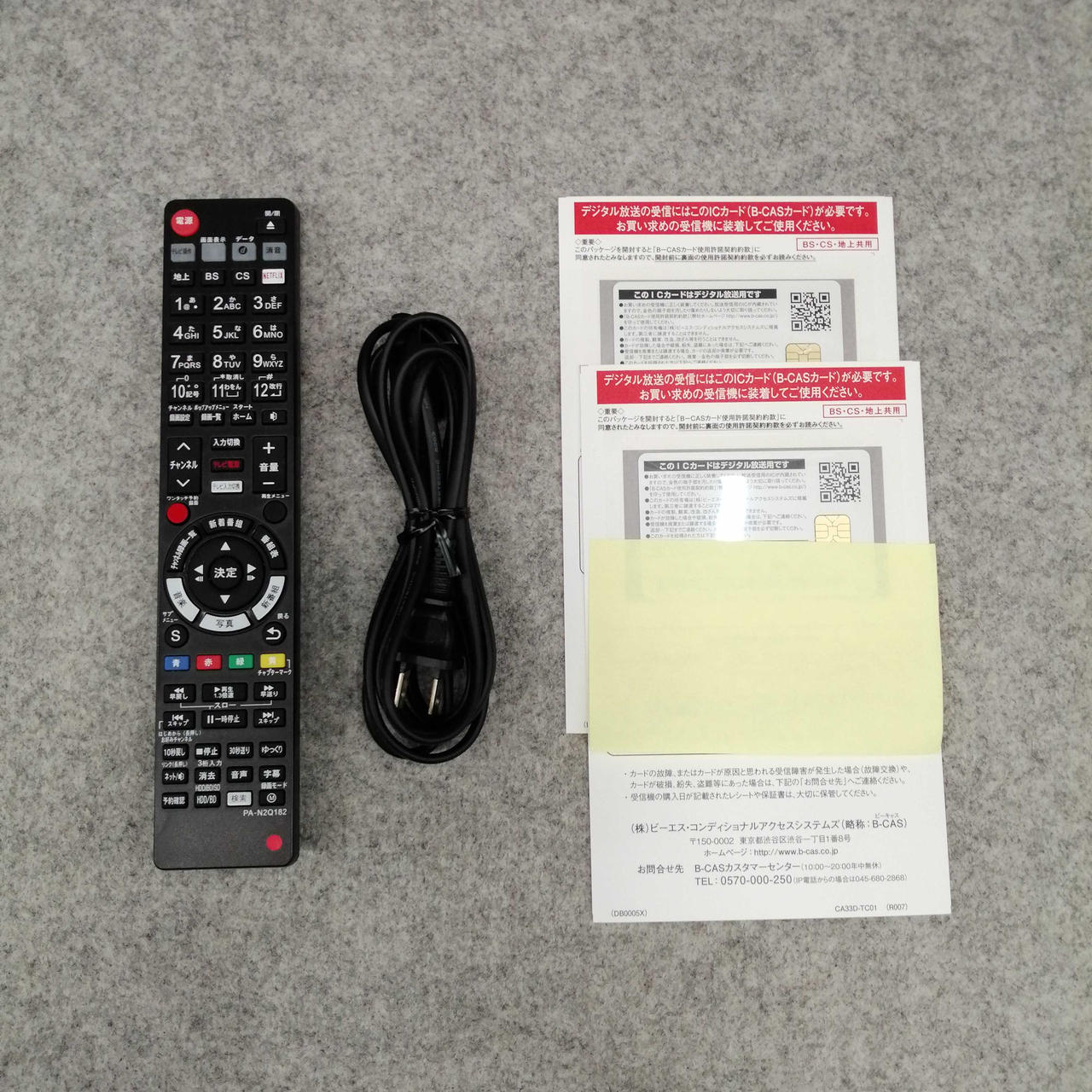 ・電源ケーブル・リモコン(社外品)・B-CASカード×2 |