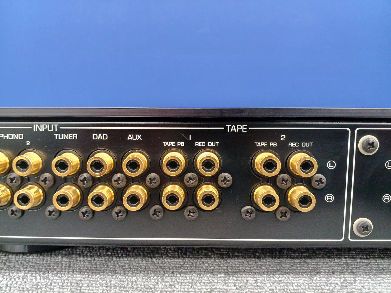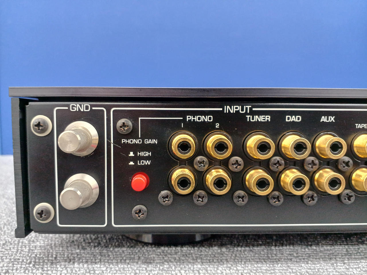 入力感度/インピーダンス:Phono1 MC:100μV-316μV/100Ω、1kΩ Phono1 MM:2.5mV-7.9mV/47kΩ(入力容量100pF、220pF、330pF) Phono2:2.5mV-7.9mV/47kΩ(入力容量220pF) DAD:150mV/2.2MΩ AUX他:150mV/47kΩ |