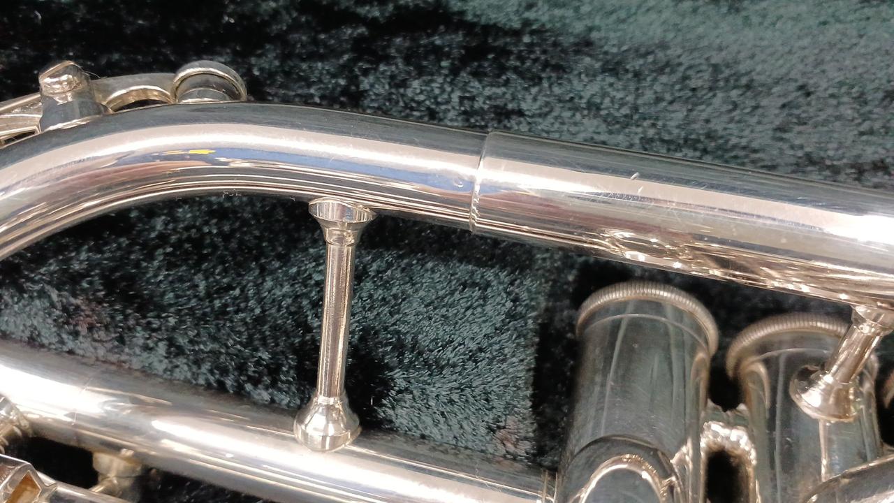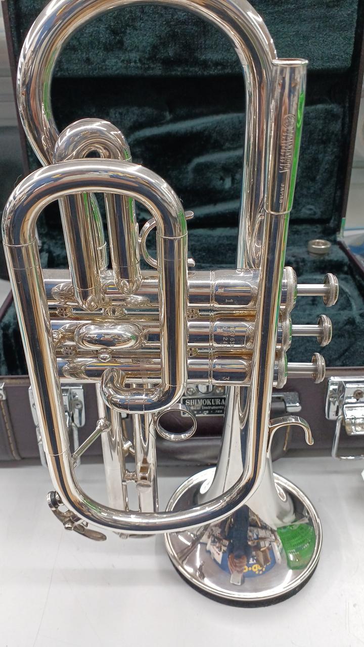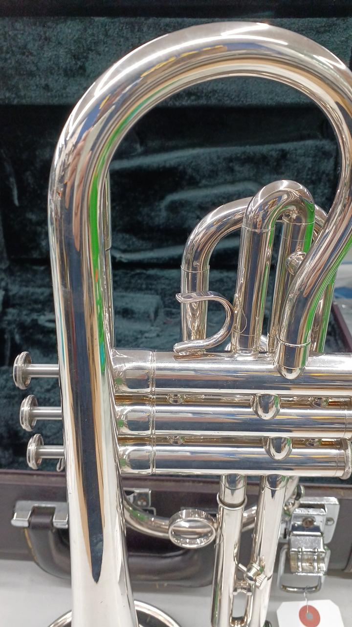 ヤマハのプロモデルのショートコルネット 調子:B♭ イエローブラス・銀メッキ仕上げ ※打痕補修・メンテナンス済み 付属:ハードケース・マウスピース |