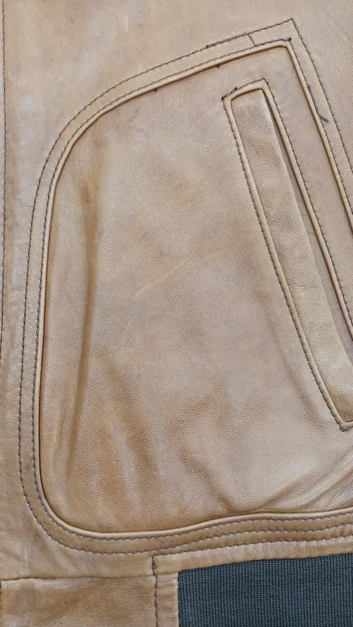 通常の使用感があります。右脇付近とそのポケット辺りに汚れが有ります。 |