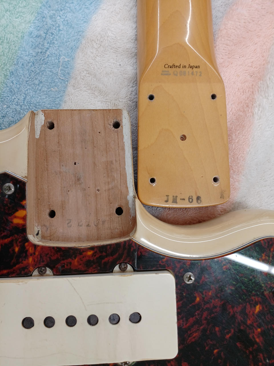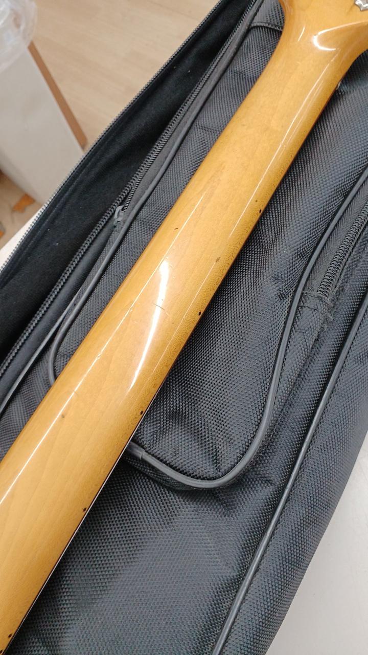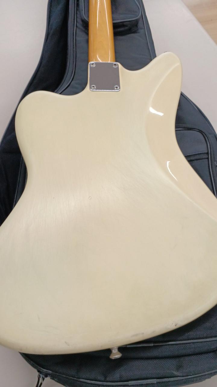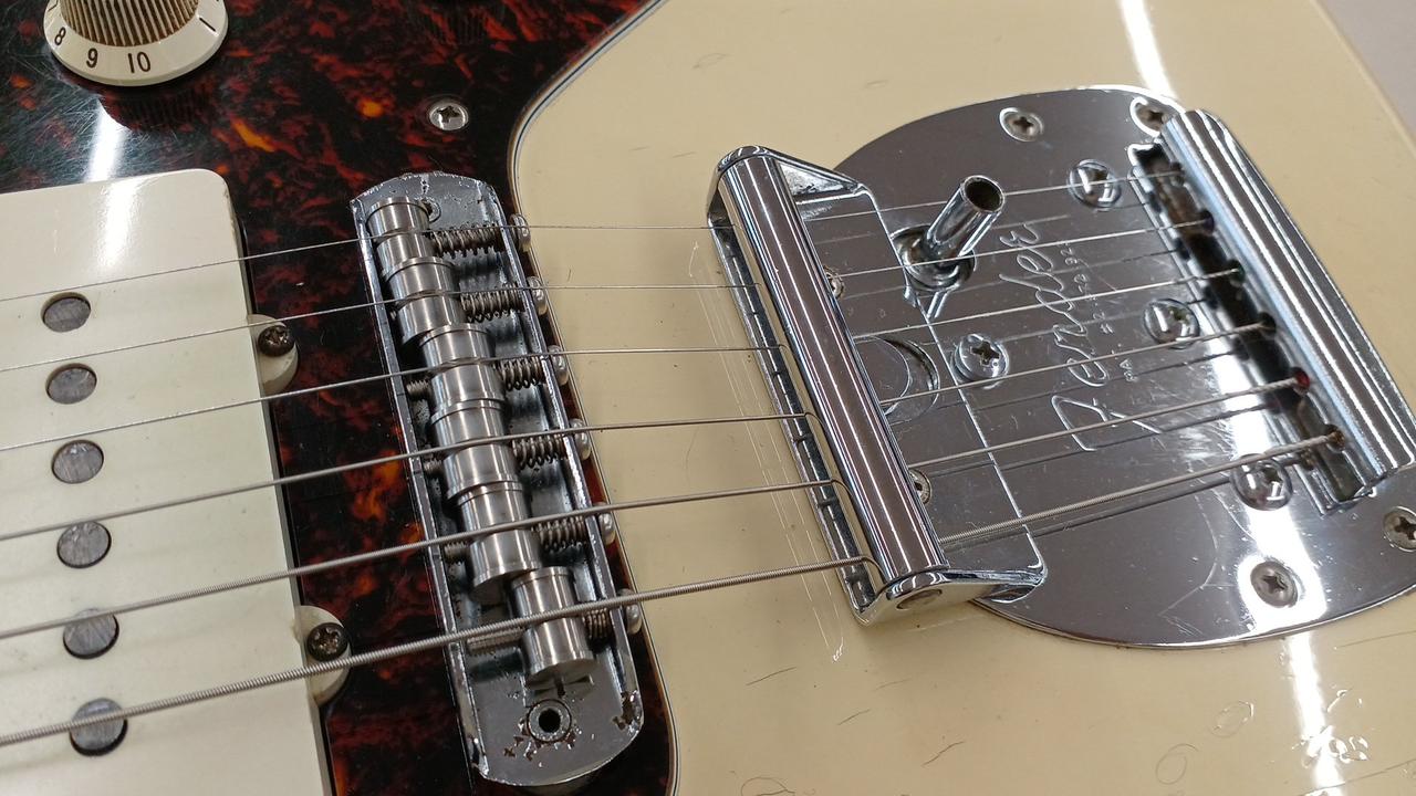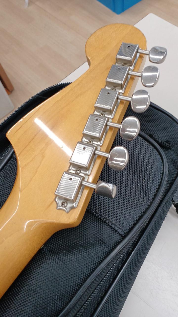 ダイナ期フェンダージャパンのジャズマスターを実践的にカスタム! ロックペグ搭載 ピックアップをセイモアダンカンAntiquity×2 バズストップバーと駒交換で弦落ち対策済み ボディ:アルダー ネック:メイプル 指板ローズウッド 21f ※バック・サイドやすりで削った痕があります。 社外ギグバッグ付き |