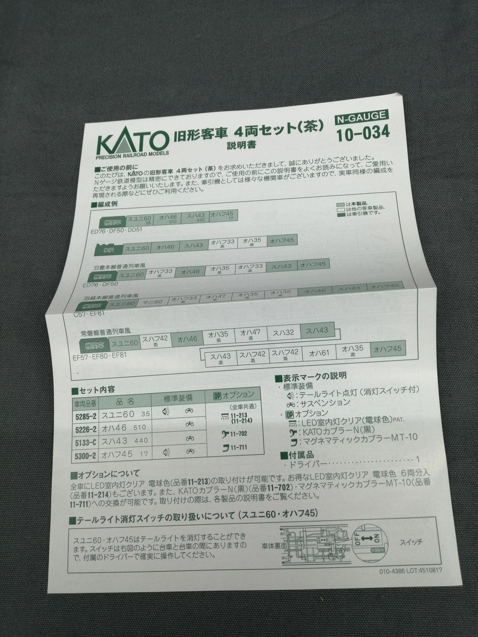 型番:10-034 旧形客車4両セット(茶)