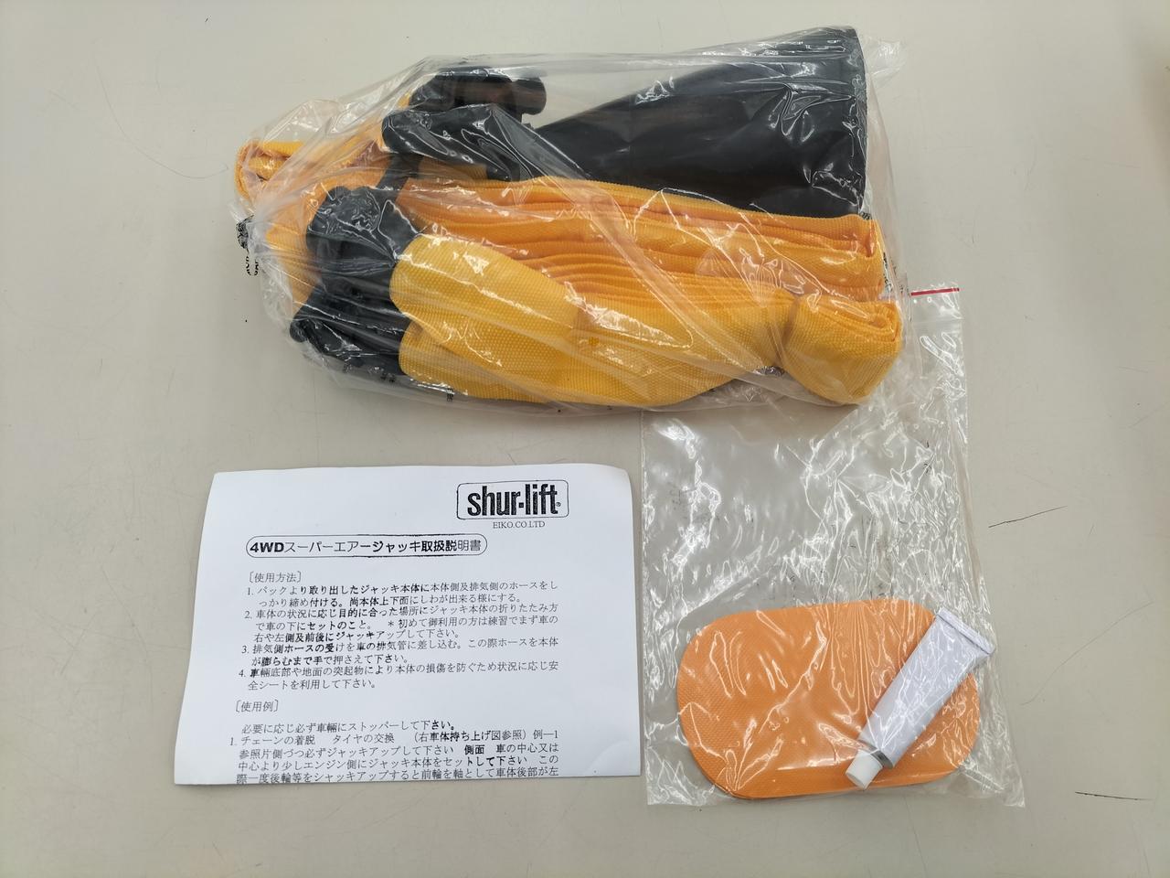 セット内容:エアージャッキ本体、ホース2本、補助用マット、簡易修理ki t(補修ゴム、接着剤)、収納バック |