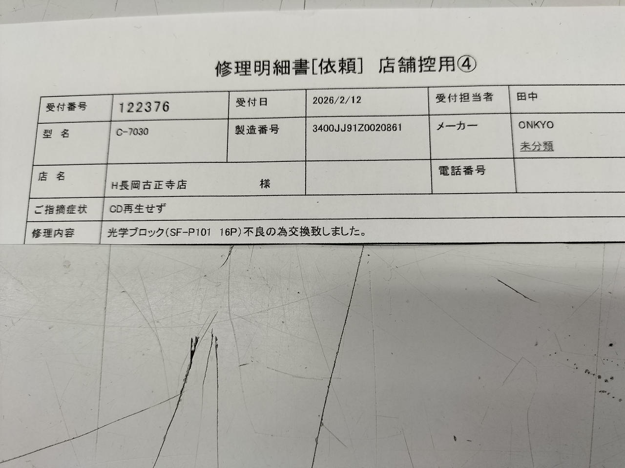 当社リペアにて光学ピックアップ交換済みです |