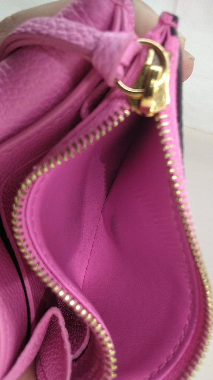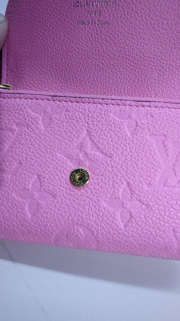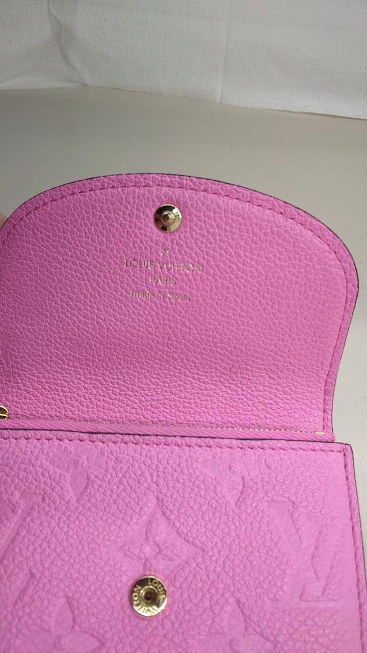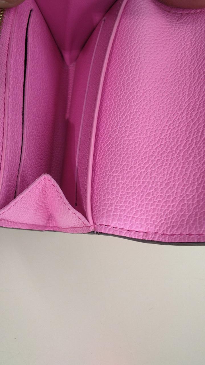 モノグラム・パターンがエンボス加工されたローズロリポップカラーのアンプラントレザーを使用した上品なコインケースでございます。
