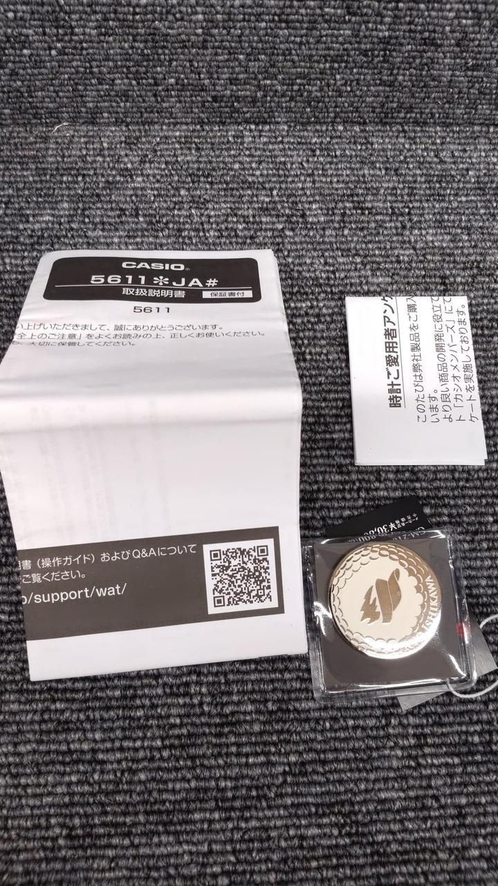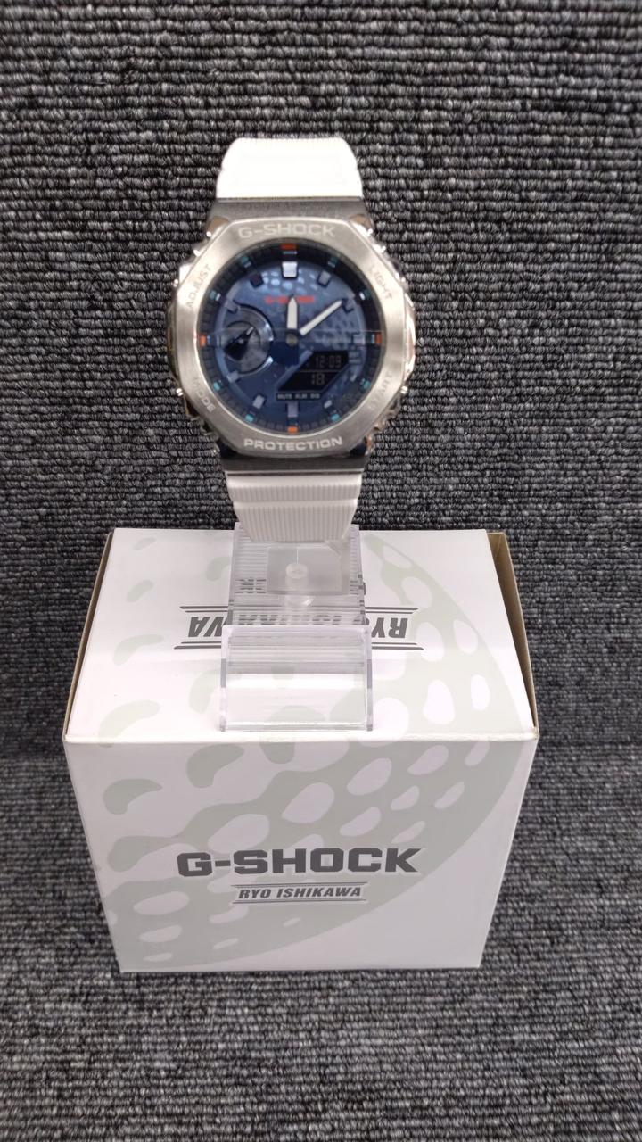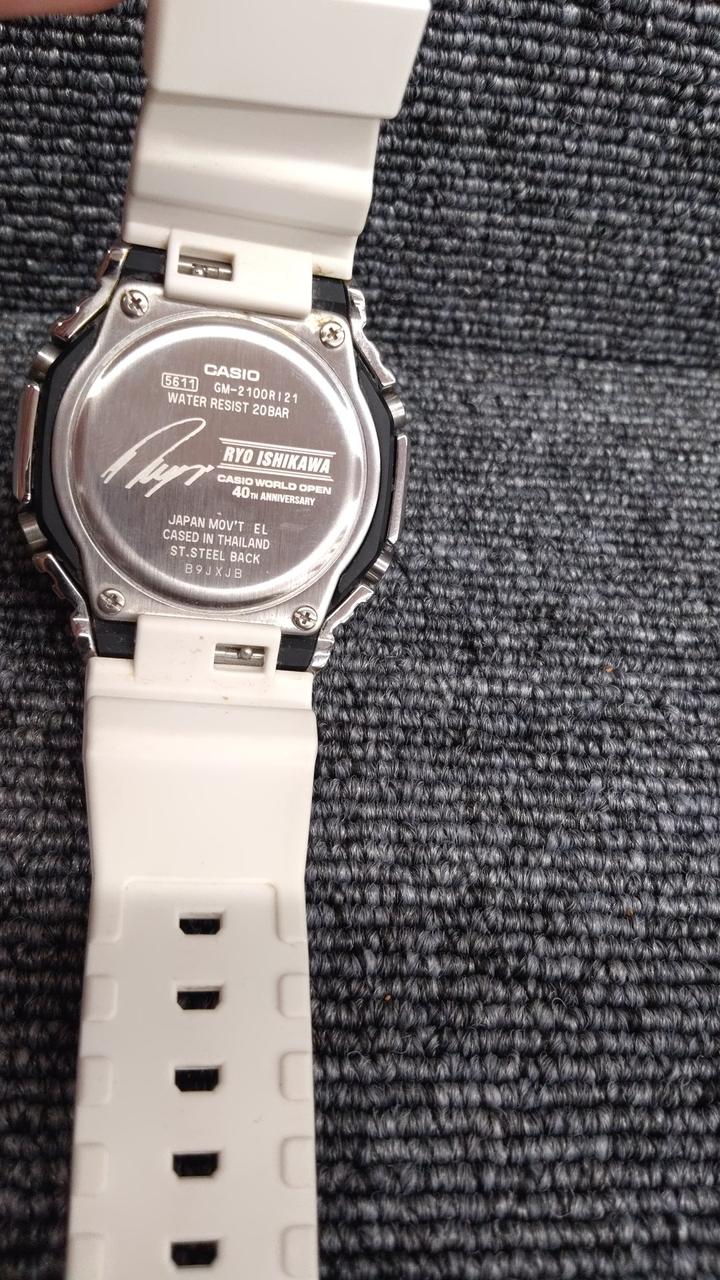 ゴルフボール柄のGM-2100。ゴルフボールを模した印刷が文字板に施されており、裏には石川遼のサインをマーキングしてある。