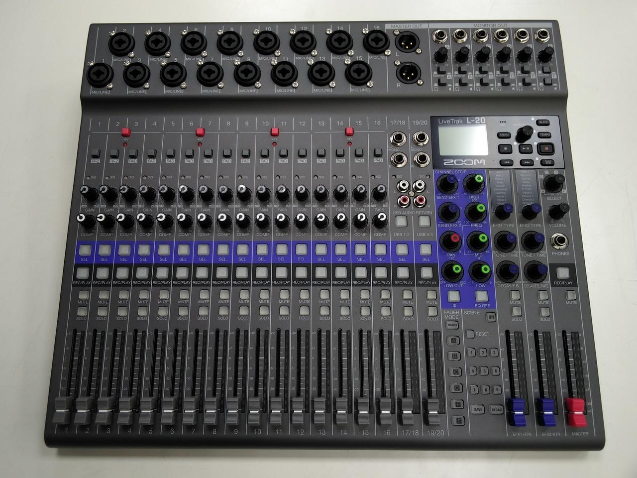 中規模のライブPAにも対応する20chのデジタルミキサーです |
