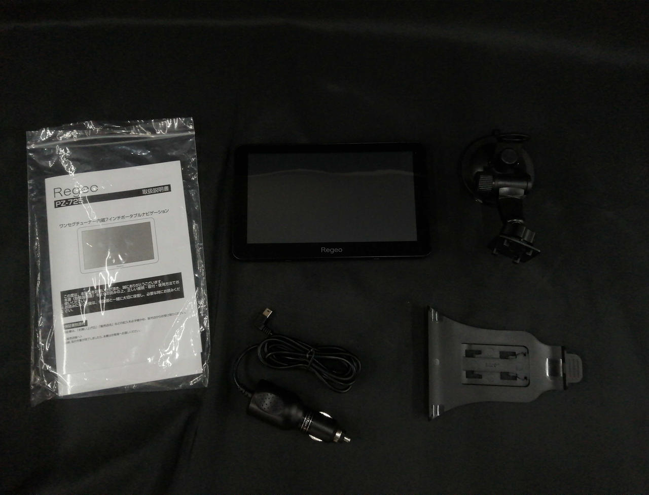 付属品(本体、シガー電源、吸盤スタンド、取扱説明書) |