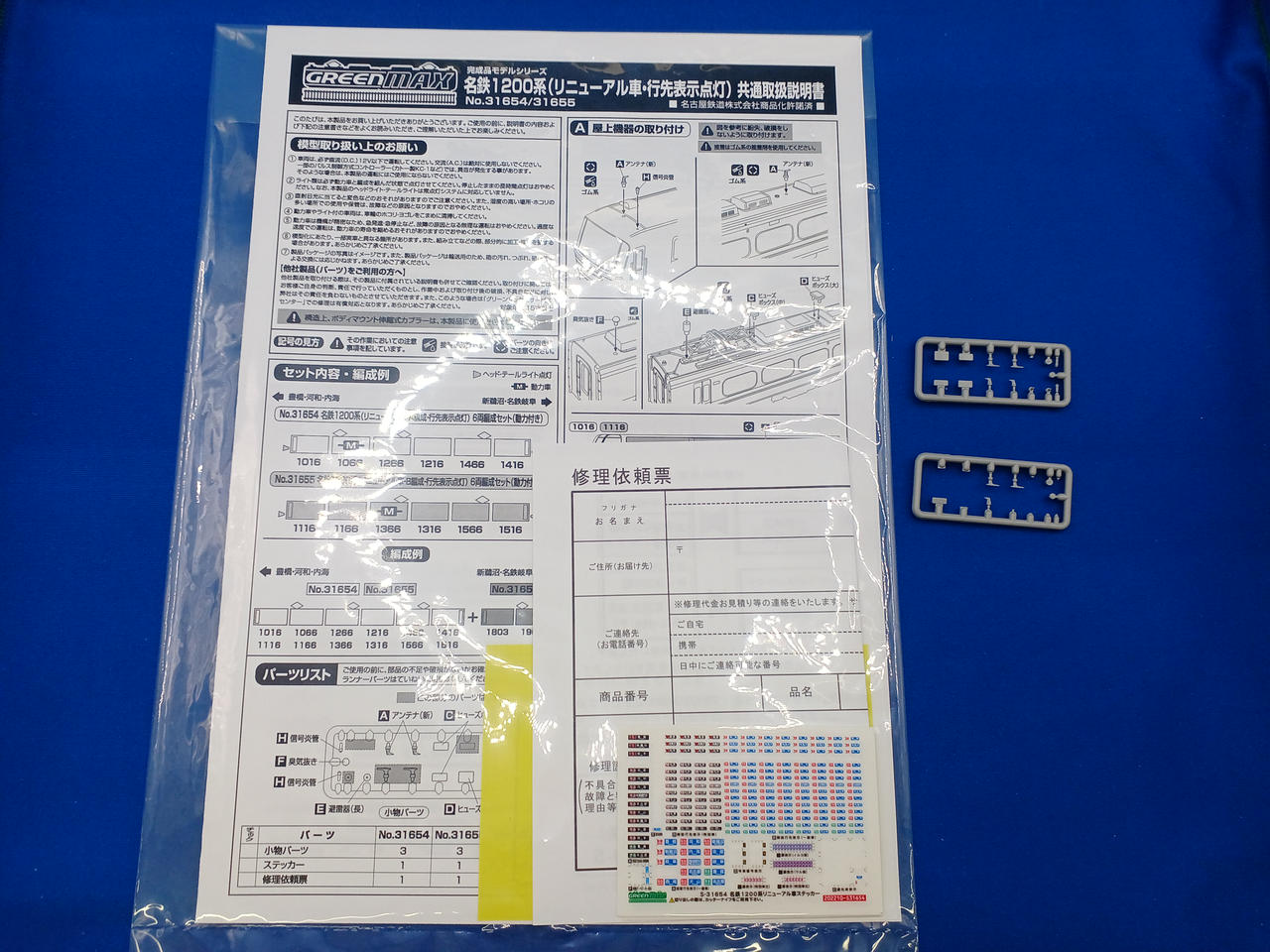 取扱説明書、シール・パーツ残 |