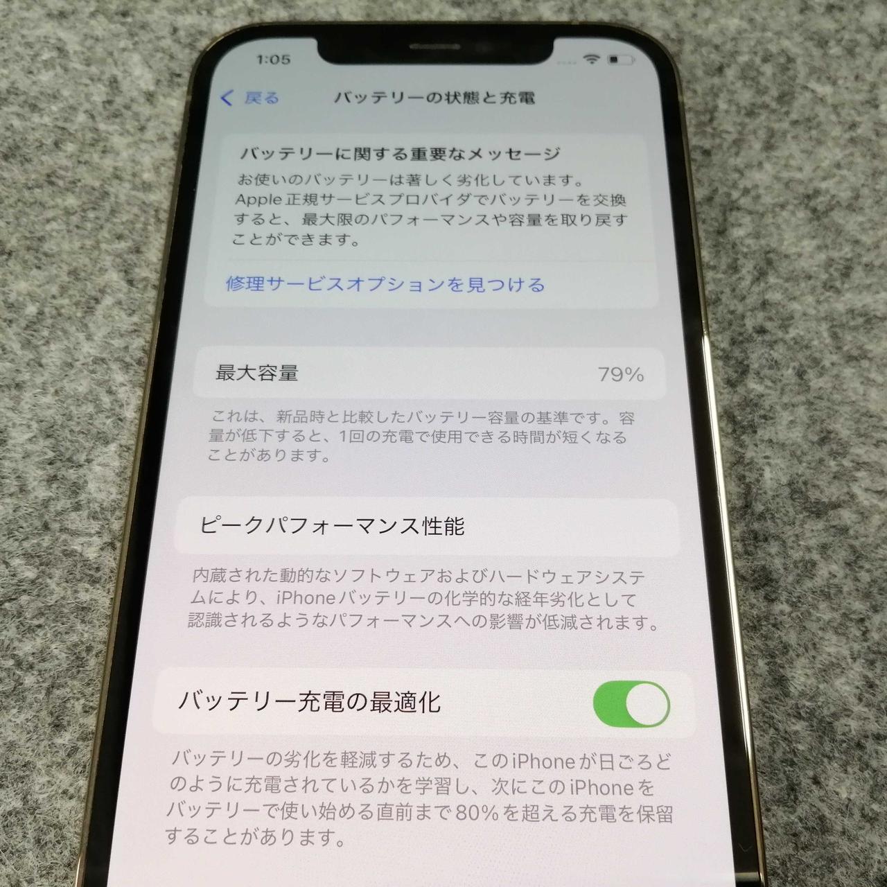 バッテリー最大容量:79% |