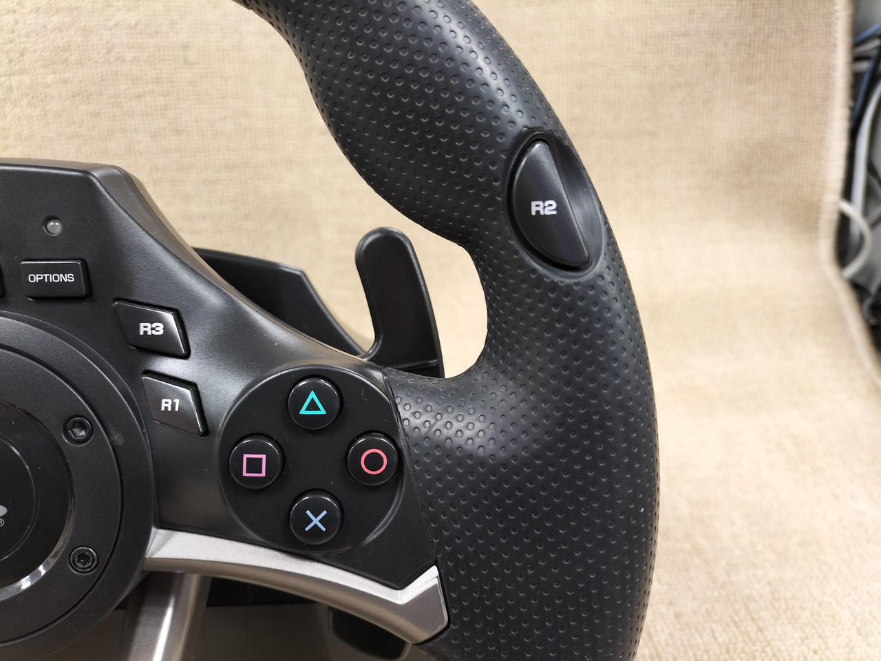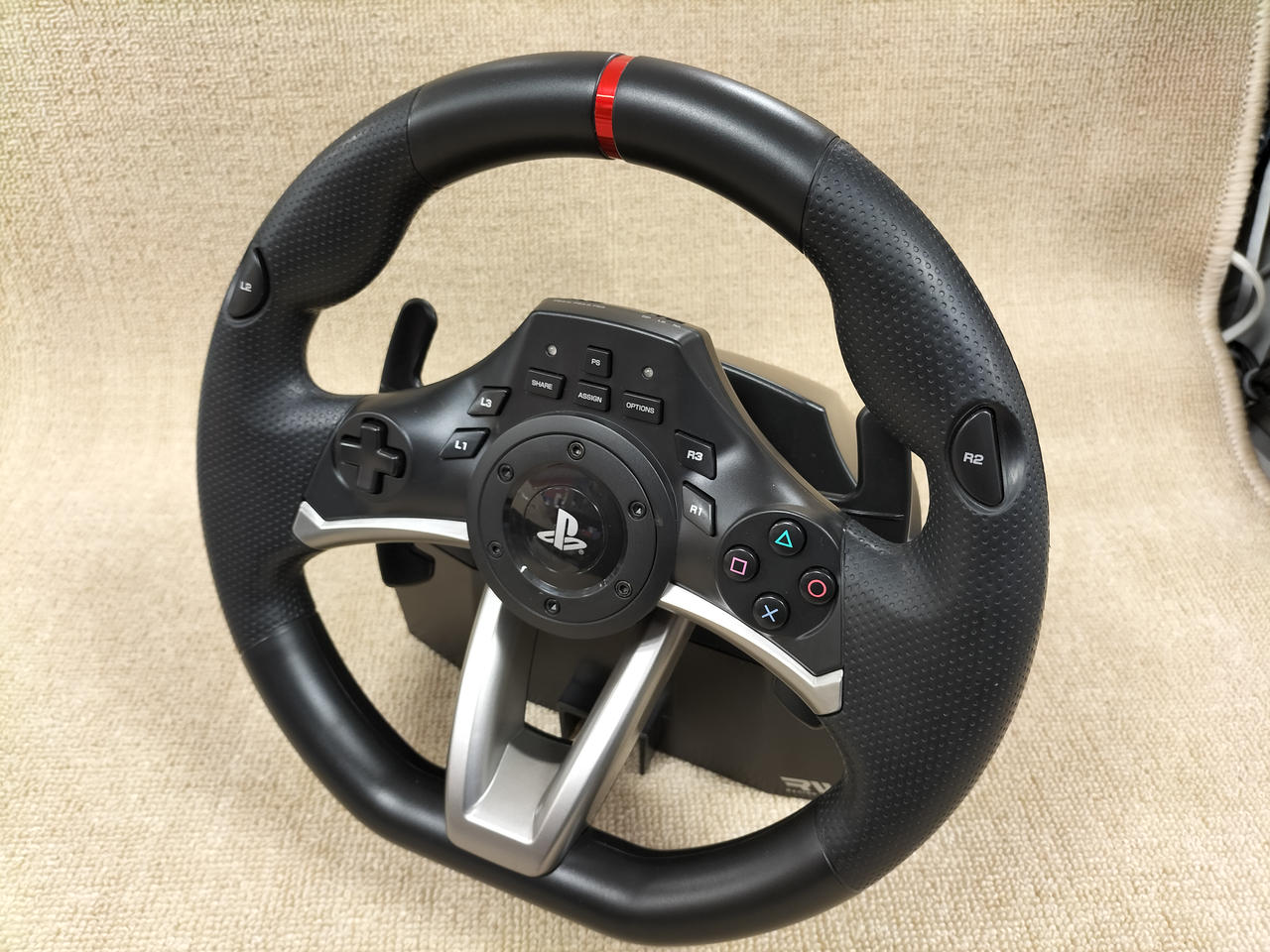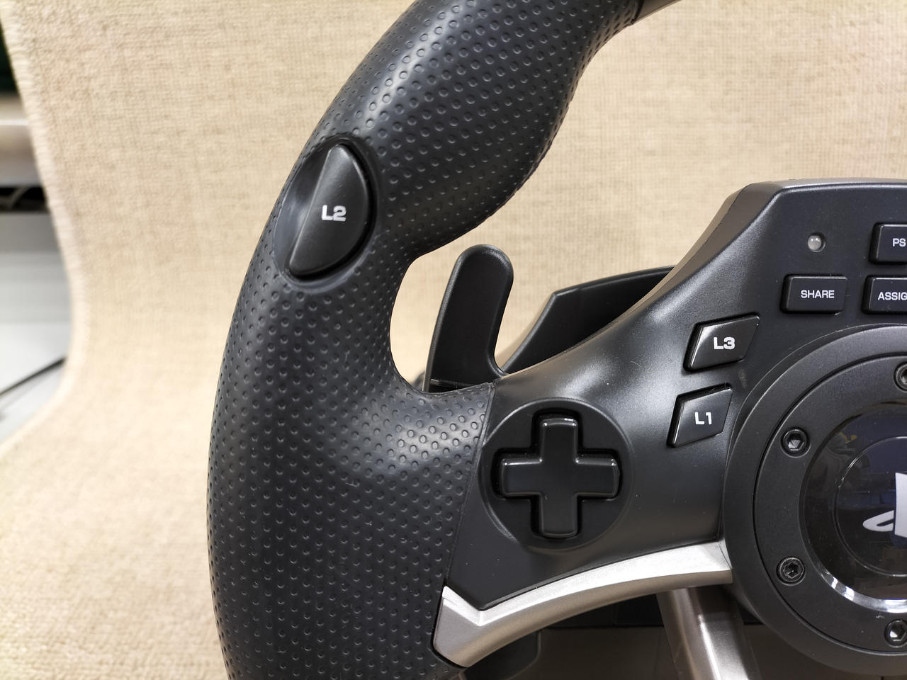 “レースに勝つ”ための操作と機能性を追求したステアリング型コントローラー。リアルな握り心地や操作感を体感し、より深くレースゲームの世界へ入り込んで頂ける様にデザイン設計。ステアリングを左右いっぱいに切るまでの間の入力値を7段階に調節することができます |