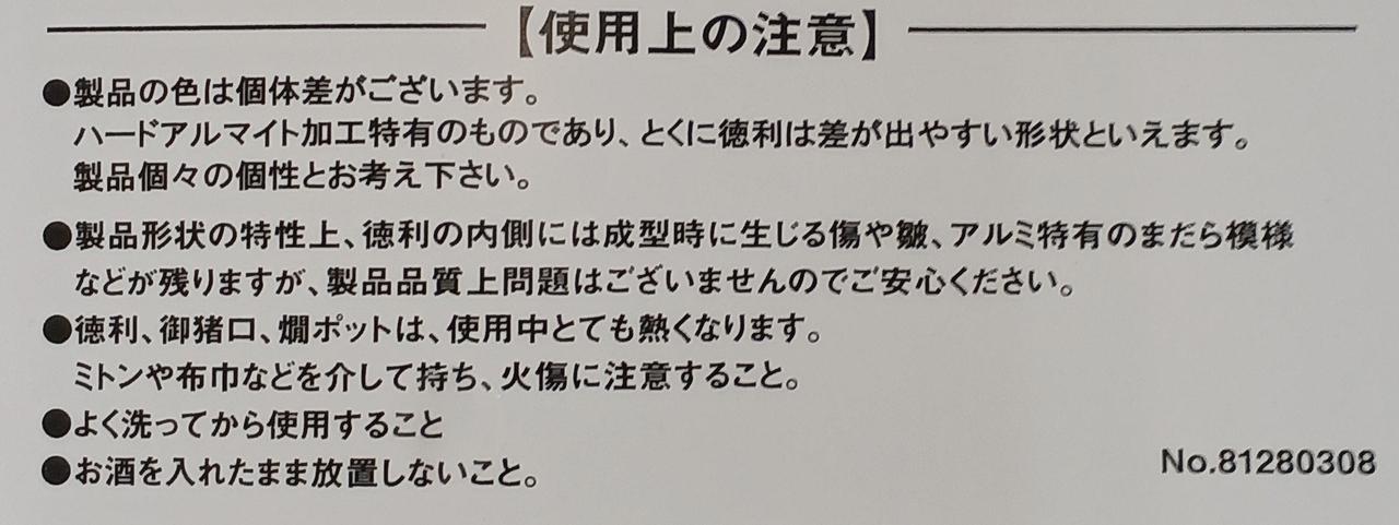型番:アウトドア熱燗セット