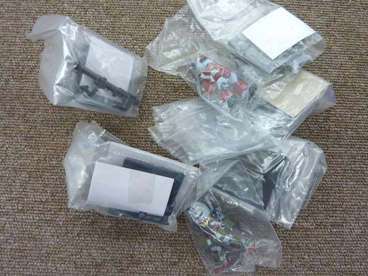 外箱開封済み、ガンダムだけ袋の連結が取れていますが、内袋は一切開けた形跡がありませんので状態は申し分ありません。箱から出して飾る予定の人にはちょうど良いと思われます。 |