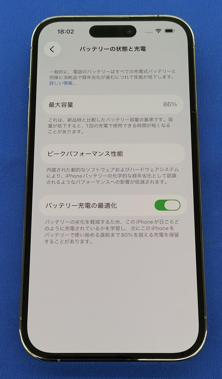 バッテリー最大容量:86% |